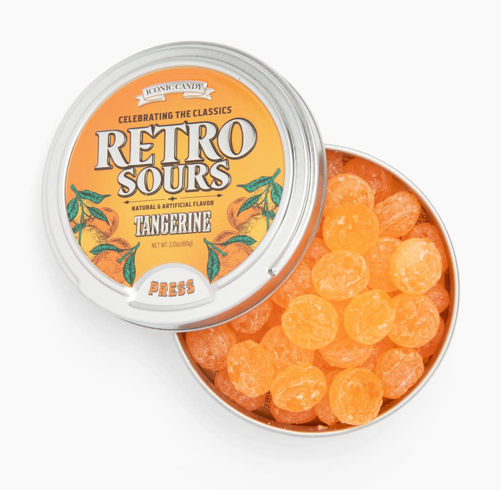 Retro Sours Tangerine Flavor Premium Hard Candy in Decorative Tin Flavor: Tangerine