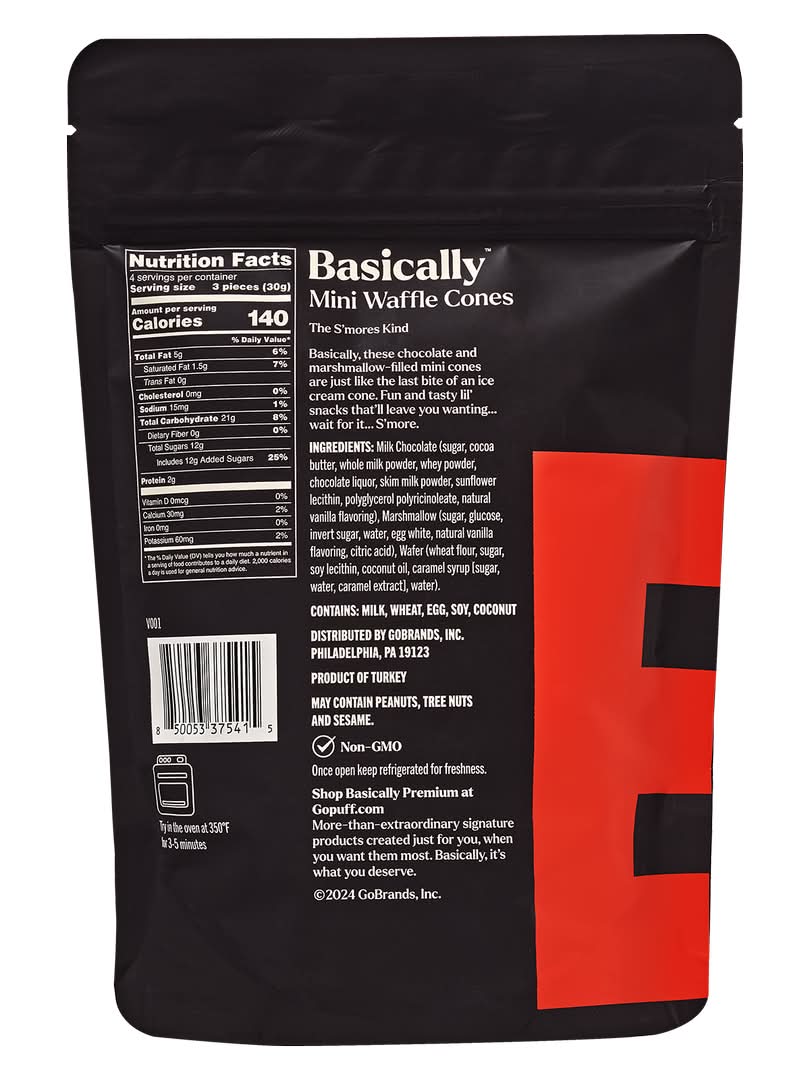 Basically Premium S Mores Mini Waffle Cone (4.23 oz)