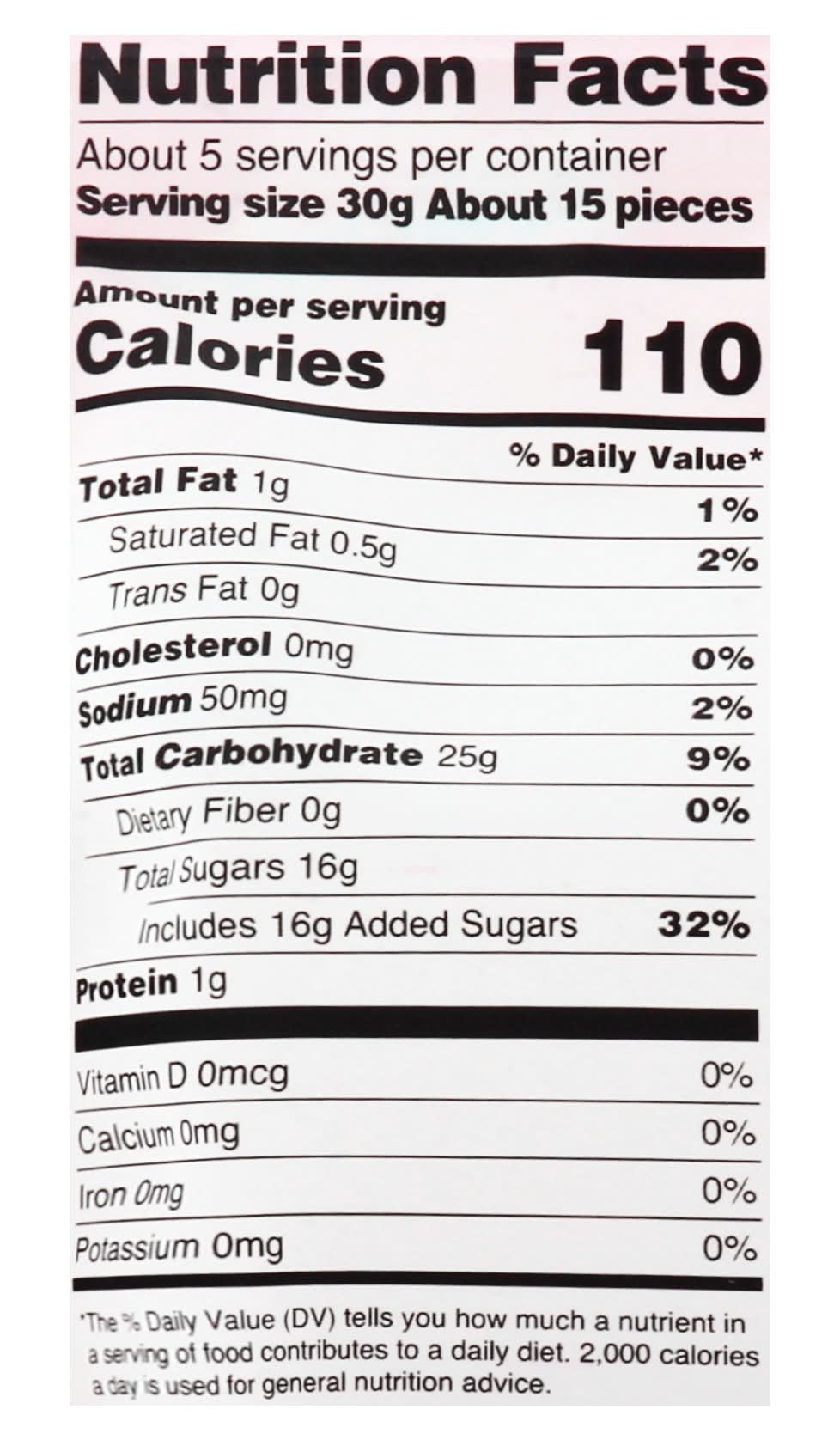 Ingredients: Organic Cane Sugar, Organic Brown Rice Syrup, Organic Rice Flour, Water, Organic Corn Starch, Organic Palm Fruit Oil, Natural Flavor, Citric Acid, Sodium Citrate, Organic Pomegranate Juice Concentrate, Organic Strawberry Juice Concentrate, Organic Licorice Extract, Salt, Colored with Organic Concentrate (Carrot, Apple, Blackcurrant), Organic Carnauba Wax, Organic Sunflower Oil