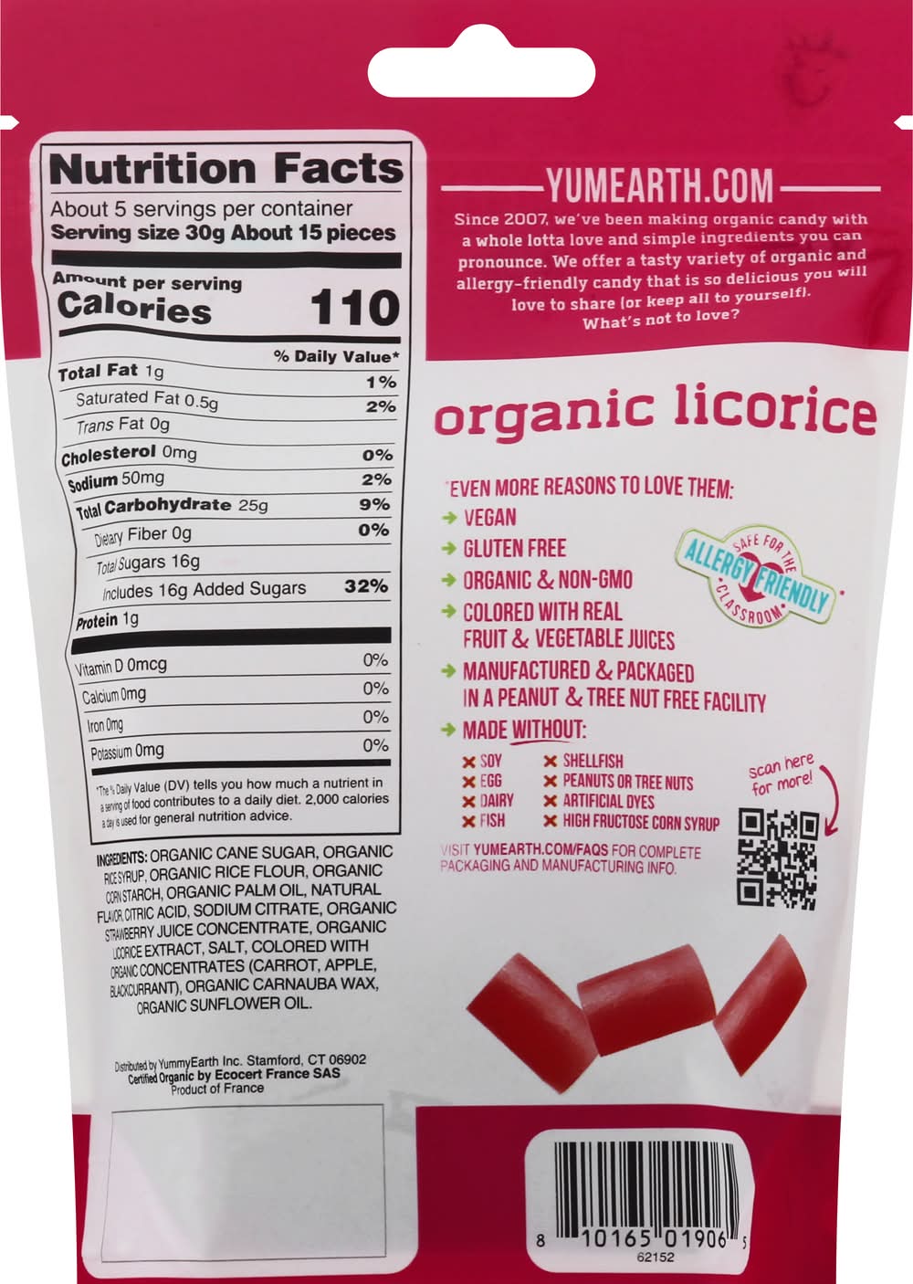 Licorice, Organic, Strawberry • Flavor: Strawberry • YummyEarth Inc., Stamford,CT,06902