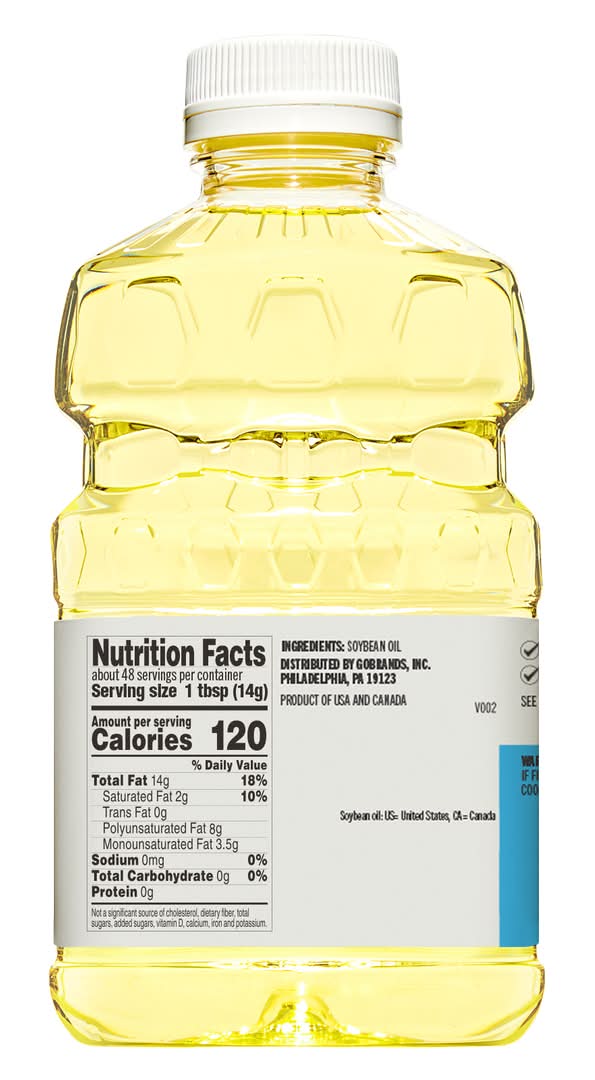 We got a brand makeover, but the good stuff inside hasn't changed. Unbox the new look and enjoy the familiar greatness. Basically, this is the pantry staple you don’t know you need until you immediately need it. Like when frying French fries, or making boxed cakes, or sautéing veggies. What makes it great: - Vegetable oil made from soybeans - Neutral cooking oil for use in baking, frying and roasting without an overpowering taste - 0g Trans Fat Per Serving* Good to know: - Certified Kosher Basically, if you’re still reading this, it’s more-than-ordinary vegetable oil at great value when you need it most. Brought to you by Gopuff. *See nutrition information for fat and saturated fat content