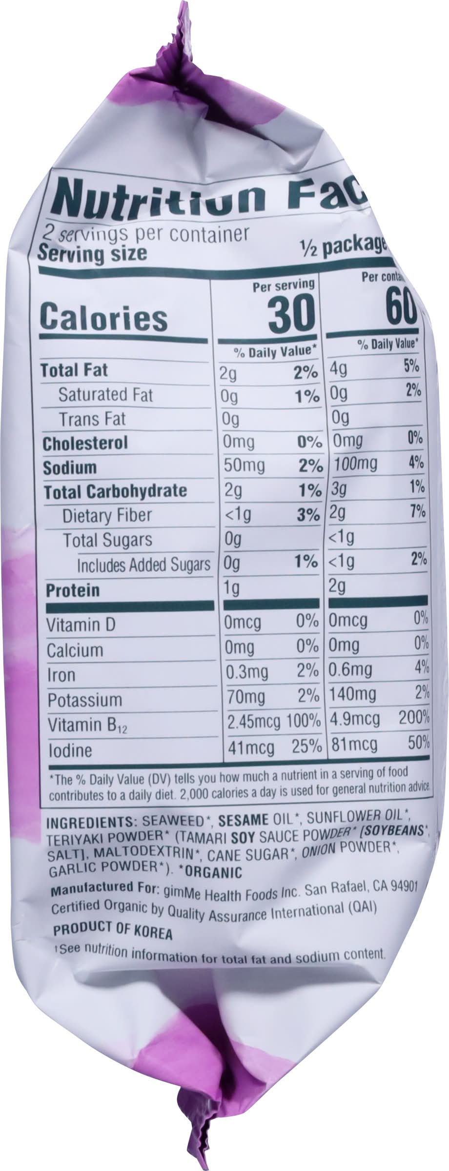 Gimme Organic Premium Roasted Seaweed Snacks, Teriyaki (0.35 oz)