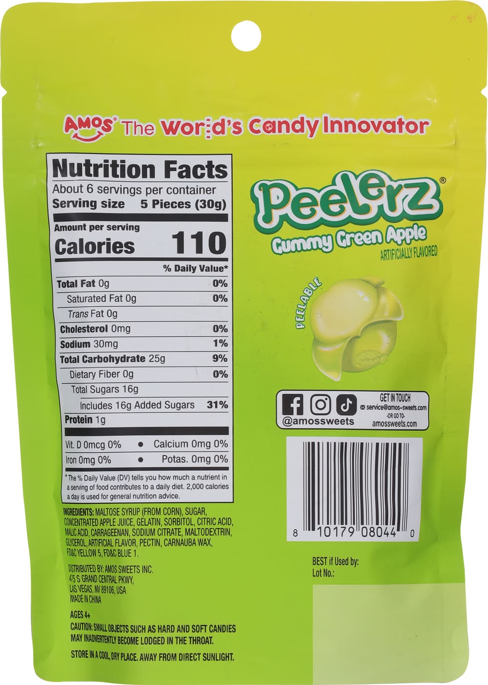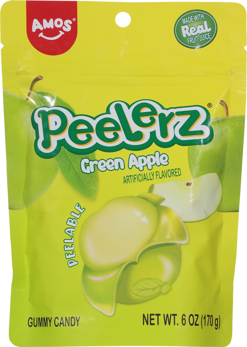 AMOS Peelerz Gummy Candy, Green Apple (6 oz)