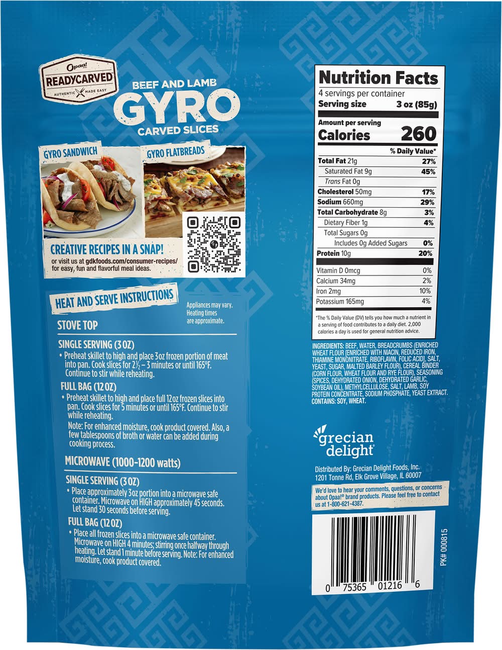 Opaa! Beef & Lamb Gyro Carved Slices (12 oz)