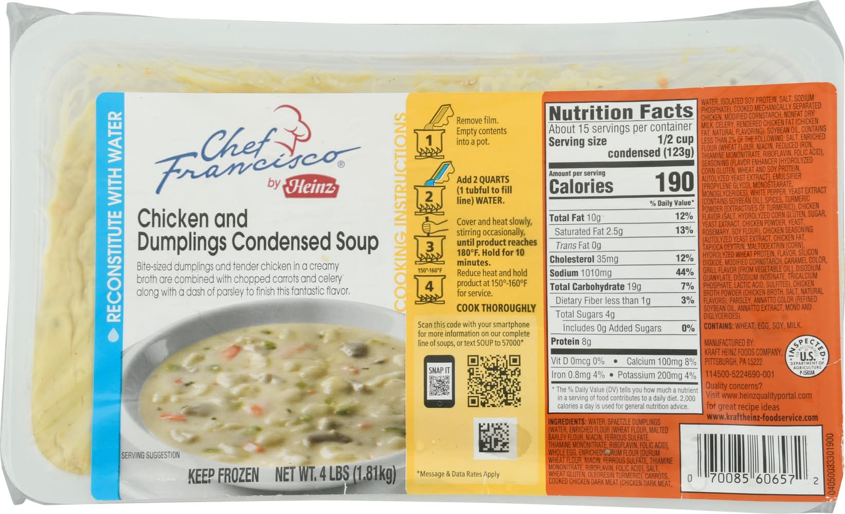 Chef Francisco Frozen Condensed Soup, Chicken & Dumplings (4 lbs)