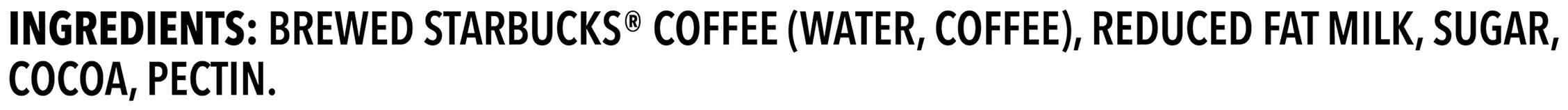Ingredients: Brewed Starbucks Coffee (Water, Coffee), Reduced Fat Milk, Sugar, Cocoa, Pectin Contains: Milk