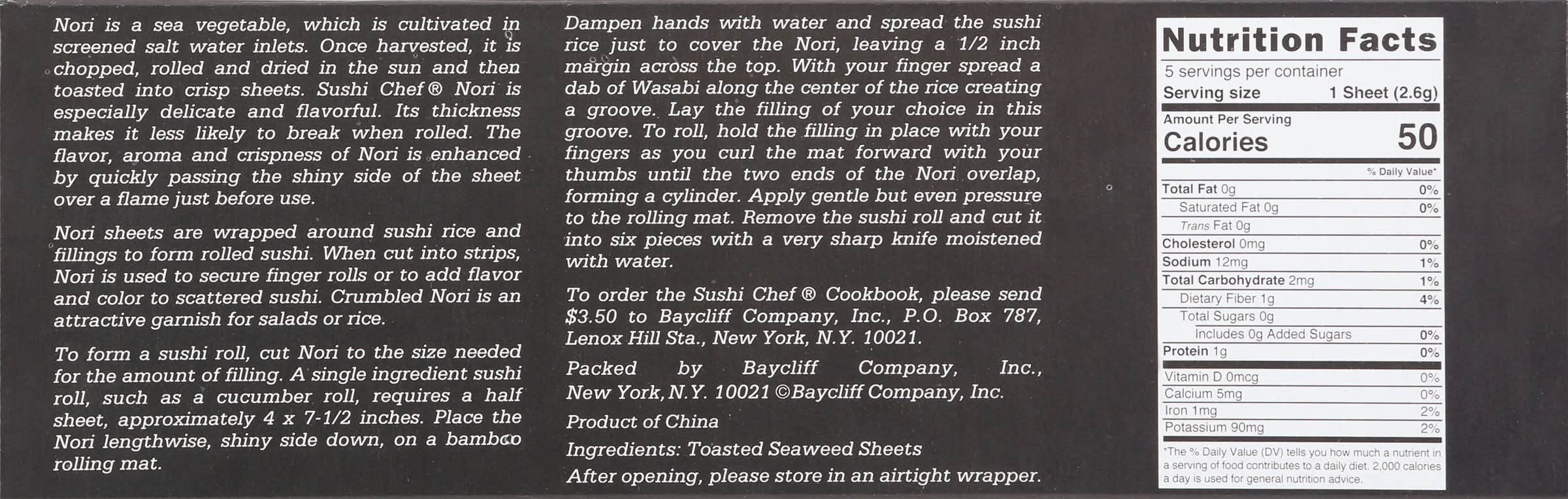 Sushi Chef Nori Toasted Seaweed Sheets Box (0.5 oz)