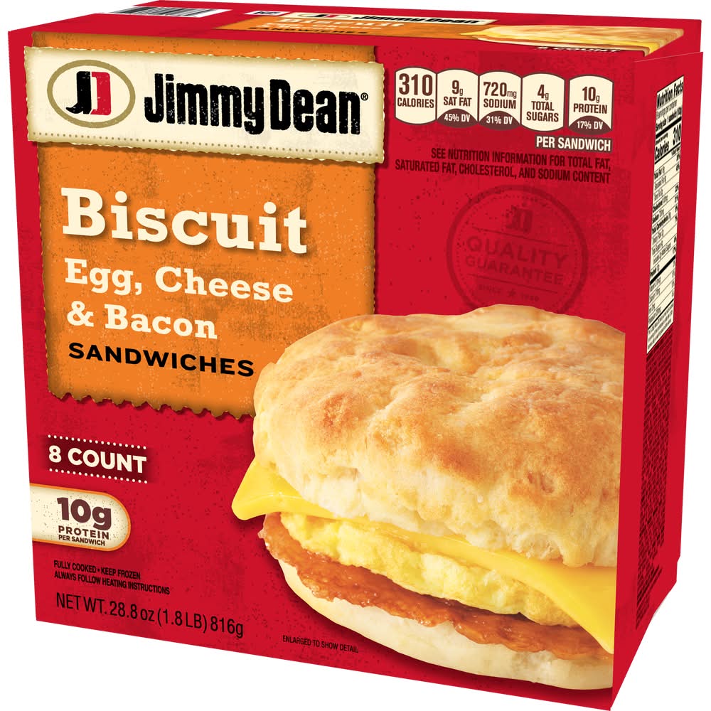 Jimmy Dean Bacon Egg & Cheese Biscuit Sandwiches (28.8 oz, 8 ct)