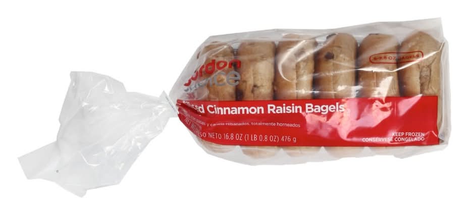 Bagels, Cinnamon Raisin, Sliced Fully Baked, Frozen, 2.8 Ounce, 6 Ct Bag