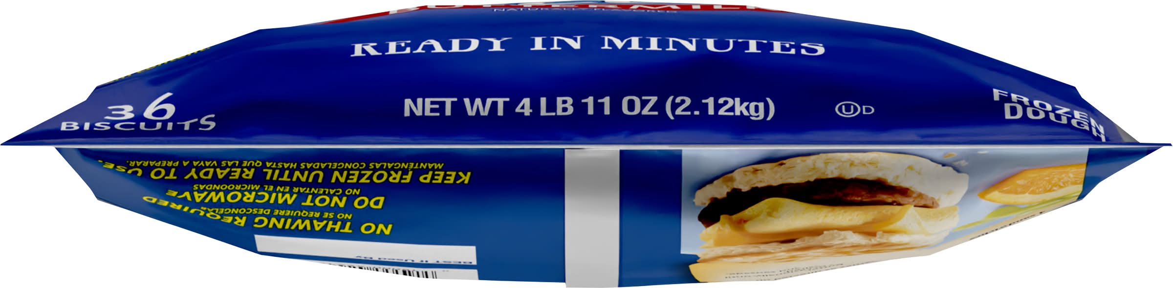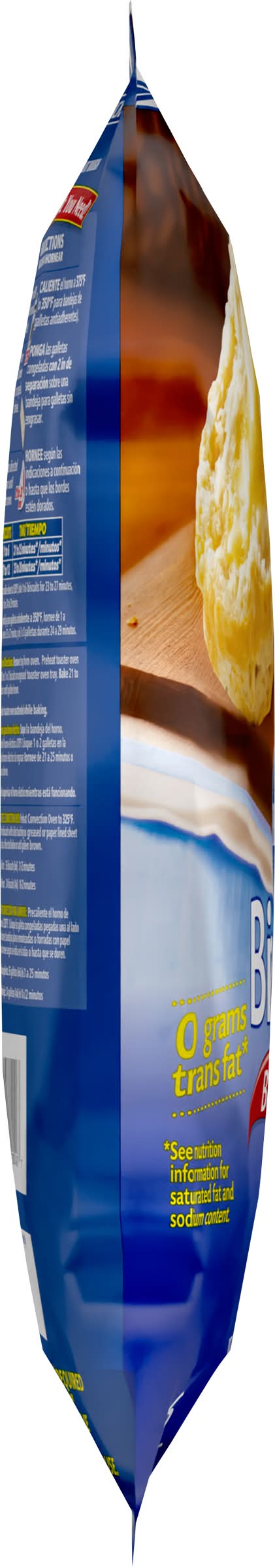 Directions for use: Directions: Bake Only What You Need! Baking Directions: 1. Heat oven to 375 degrees F. 2. Place frozen biscuits 2 inches apart on ungreased cookie sheet. 3. Bake as directed below or until golden brown. Biscuits: 1 to 6: Time 16 to 20 minutes. Biscuits 7 to 12: Time 18 to 22 minutes. Toaster Oven Directions: Preheat toaster oven to 375 degrees F. Place 1 or 2 biscuits on ungreased toaster oven tray. Bake 15 to 20 minutes or until golden brown. Food Service Convection Oven: Preheat Convection Oven to 325 degrees F. Place frozen biscuits with sides touching on greased or paper lined sheet pans. Bake until biscuits are golden brown and reach an internal temperature of 185 degrees F. Full Sheet Pan: 36 biscuits (6x6) 19-23 minutes Half Sheet Pan: 24 biscuits (4x6) 16-20 minutes. High altitude (3500-6500 ft): Heat oven to 400 degrees F. Bake 18 to 25 minutes. Frozen dough. Keep frozen until ready to use. Tear. Storage recommendation: Frozen dough. Keep frozen until ready to use.