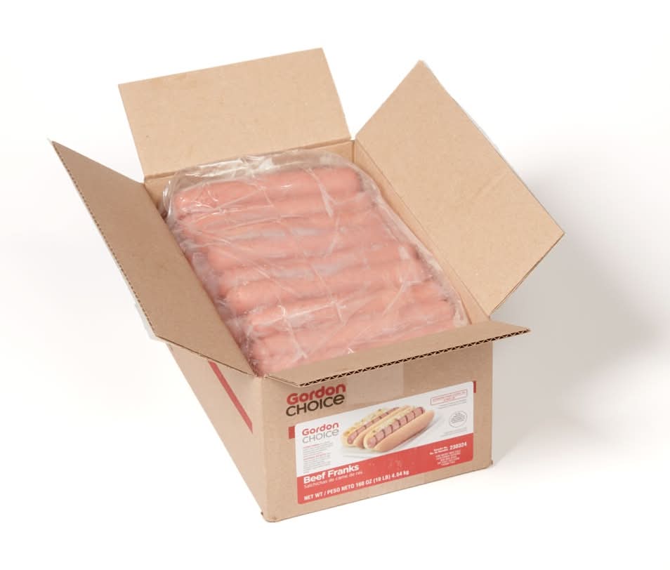 Franks, Beef, 6-3/4 Inch, 4 Count per Pound, Frozen, 5 Lb Bag, 2 Per Case