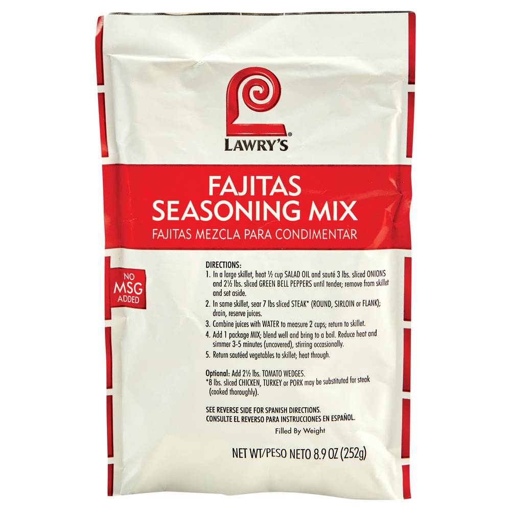 Serve your guests flavorful fajitas service after service with Lawry's Fajitas Seasoning Mix. This premium blend of herbs and spices from Lawry's creates savory seasoned Fajitas every time.