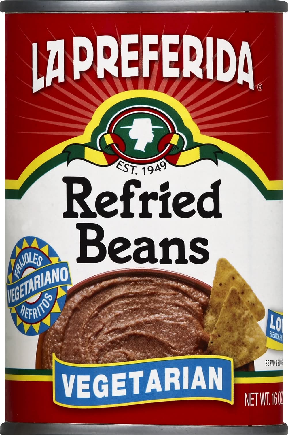 Beans, Refried, Vegetarian, 16 Oz Can La Preferida, PO Box 32260 Chicago, IL 60632