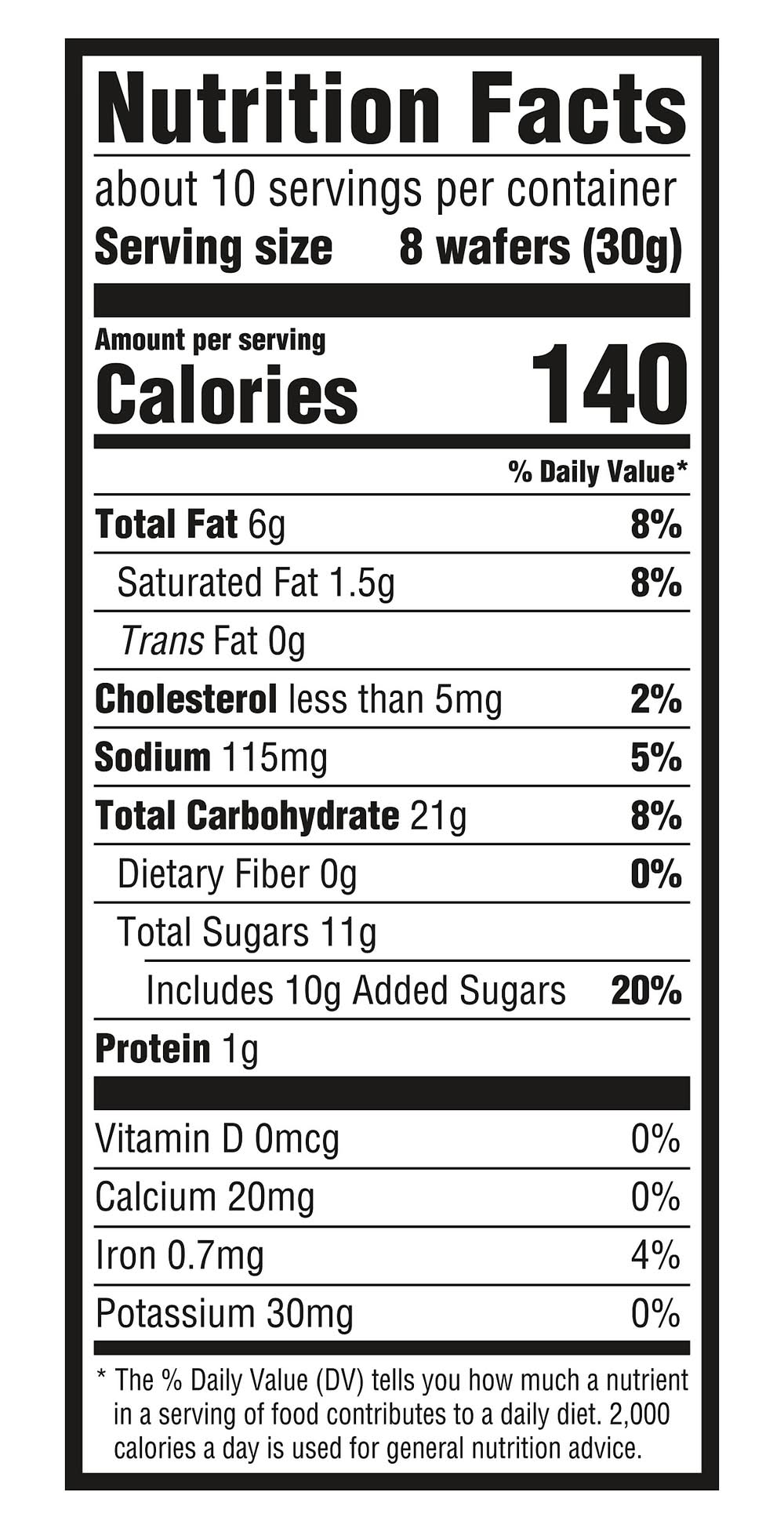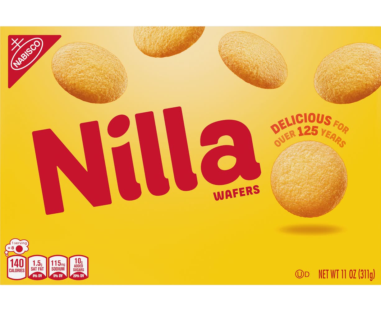 Join the Nilla community! Facebook. Pinterest. Twitter. Per 8 Wafers: 140 calories; 1.5 g sat fat (0% DV); 115 mg sodium (5% DV); 11 g sugars. Keep it Going: 100% recycled paperboard. Please recycle this carton. Minimum 35% post-consumer content. Share and browse recipes, or just be part of something sweet when you join the Nilla community! • Flavor: Vanilla • Mondelez Global Llc, East Hanover,NJ,07936,USA. • Packaging: Reusable