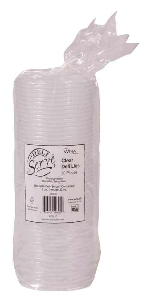 Lids, Flat, Plastic, Clear, Polypropylene, for 8/12/16/24/32 Ounce Deli Containers, 50 Ct Package