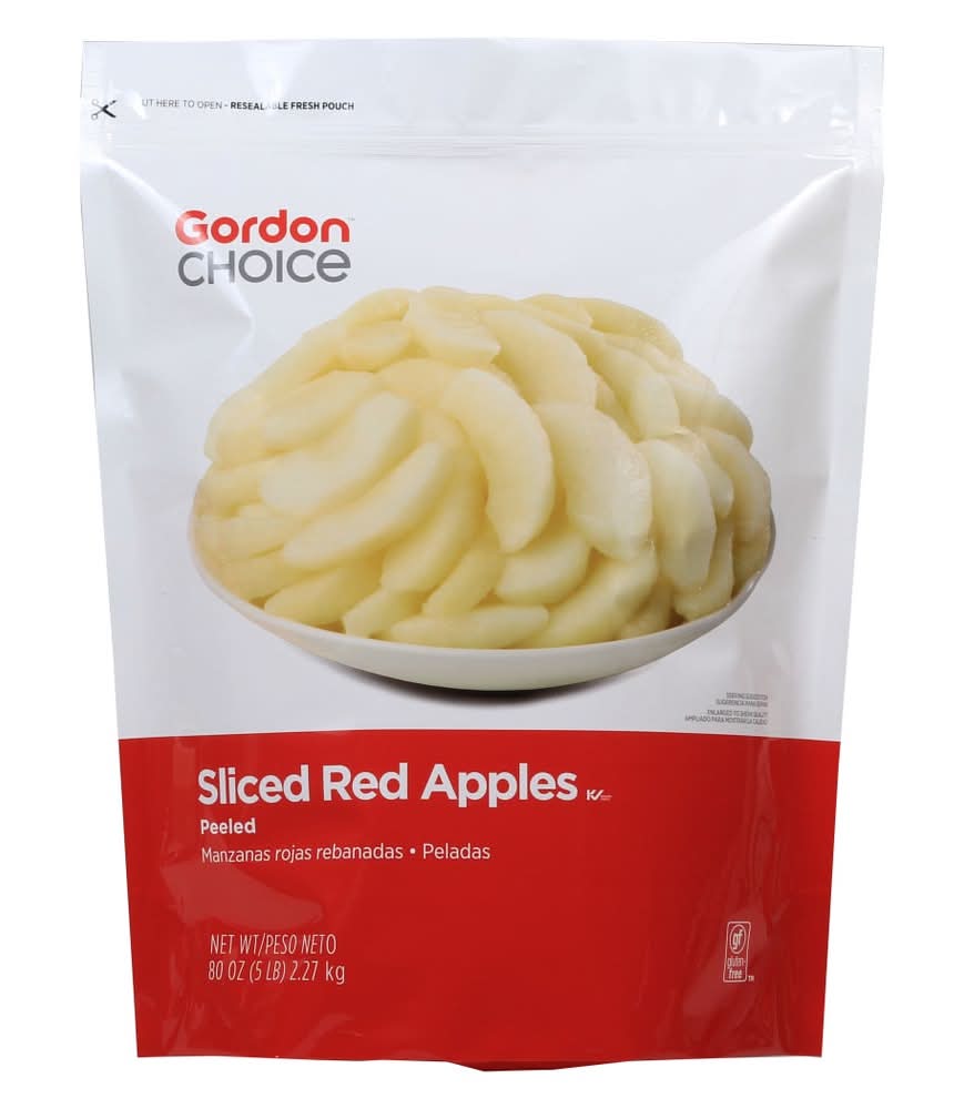 Apples, Red, Sliced, Peeled, Grade A, IQF, Reclosable, 5 Lb Bag