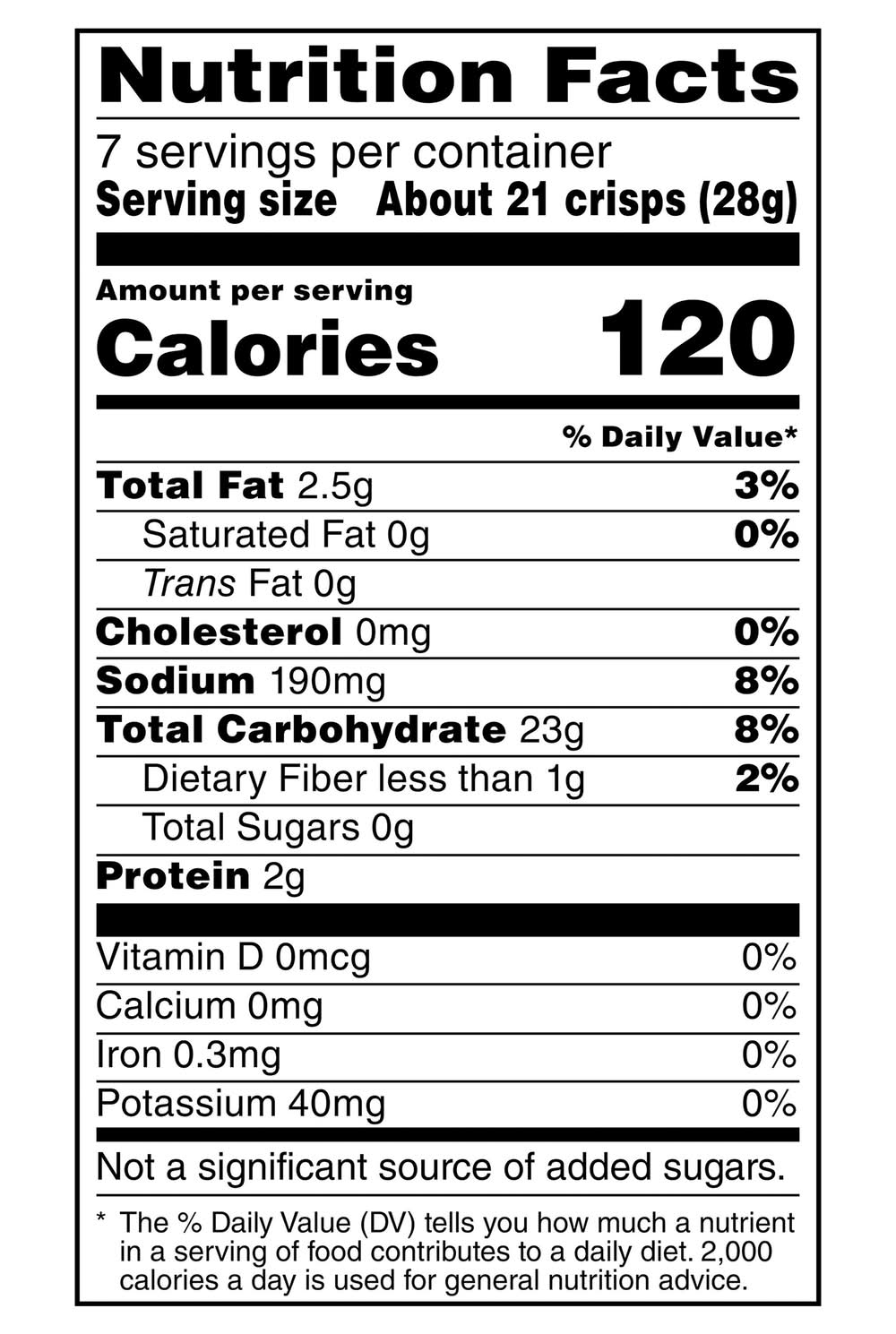 Ingredients: Yellow Corn, Sunflower Oil, and Sea Salt