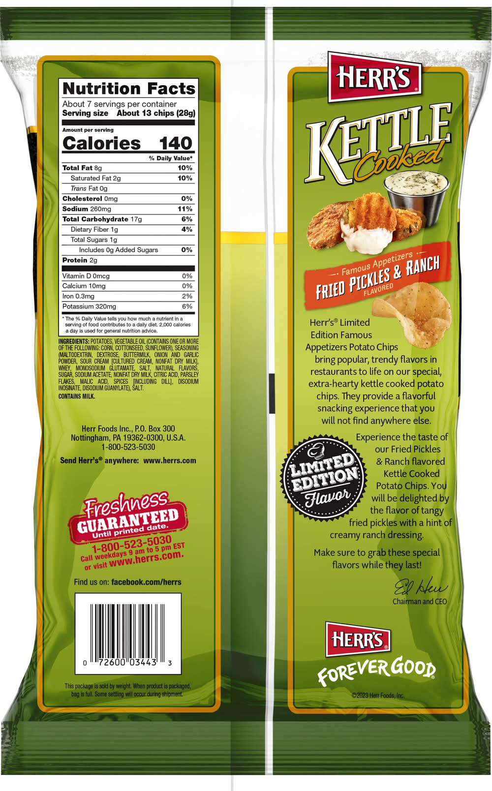 Herr's Lt Famous Appetizers Fried Pickles & Ranch Kettle Chips (6.5 oz)