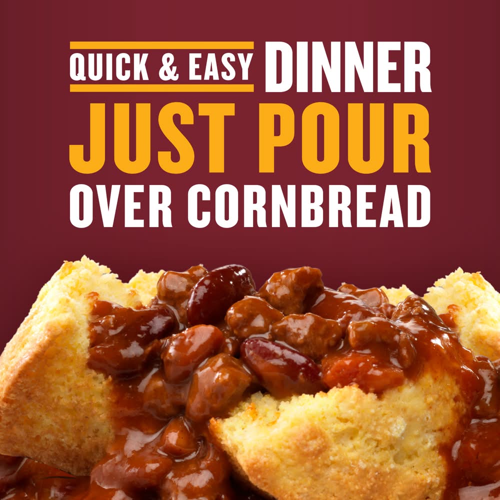 Turn up the heat on your hunger with Campbell’s Chunky Hot and Spicy Chili With Beans – now even spicier! This spicy hot chili is packed with kidney beans, seasoned beef and pork crumble, and red and green peppers, plus the perfect amount of spice for a bold, flavorful kick. With 25g of protein in each single-serve bowl, it’s a satisfyingly spicy chili that fuels even the heartiest of appetites. Campbell’s Chunky Chili is a year-round pantry staple and the MVP of game day snacks, delivering a winning combination of flavor and convenience. Enjoy a warm bowl of this microwave chili when watching the game from home, or eat it on-the-go as a convenient snack at your next tailgating event. To prepare, simply heat in the microwave for 1.5 minutes. Whether you’re a football fan or simply craving something hearty, Campbell’s Chunky Hot and Spicy Chili With Beans will keep you feeling full and satisfied from kickoff to the final whistle. Make every game day a winner with Campbell's Chunky. • Brand: Campbell's • Packaging: Reusable