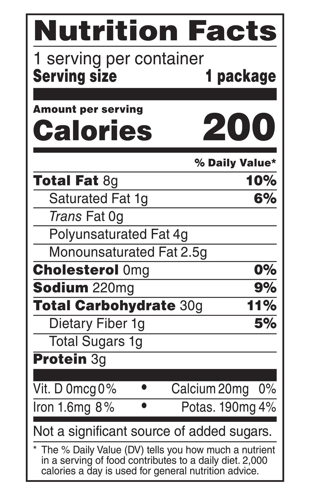 Ingredients: Enriched Corn Meal (Corn Meal, Niacin, Ferrous Sulfate, Thiamin Mononitrate, Riboflavin, Folic Acid), Vegetable Oil (Corn, Canola, and/or Sunflower Oil), and Less than 2% of Corn Maltodextrin, Salt, Yeast Extract, Sugar, Citric Acid, Potassium Salt, Cheddar Cheese (Milk, Cheese Cultures, Salt, Enzymes), Onion Powder, Whey, Vegetable Juice (Color), Whey Protein Concentrate, Garlic Powder, Natural Flavors, Buttermilk, and Paprika Extract (Color) Contains: Milk