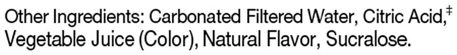 Ingredients: Metaplus Proprietary Blend: Taurine, Guarana Extract (Seed), Caffeine (as Caffeine Anhydrous), Glucuronolactone, Ginger Extract (Root), Green Tea Leaf Extract Standardized to 15% EGCG. Other Ingredients: Carbonated Filtered Water, Citric Acid (Citric Acid is Added for Flavor; it is Not Used as a Preservative), Vegetable Juice (Color), Natural Flavor, Sucralose. Contains 200mg of caffeine