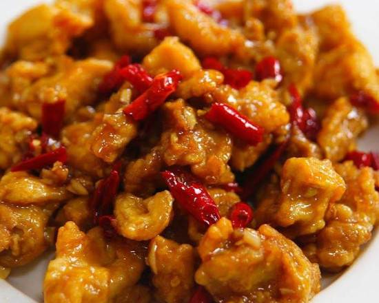 Golden tender chicken morsels in a delightful spicy sauce. Served with your choice of Rice.