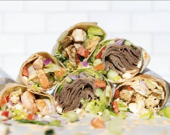 Indulge in the irresistible flavors of the gyrr-ito burrito! With a perfectly toasted tortilla, stuffed with your choice of protein, Greek's rice, refreshing cucumber, juicy tomato, tangy red onion, crumbled feta, all drizzled with a zesty chipotle ranch dressing, this burrito is a true delight for your taste buds. Served with a side of French fries. Order now and experience a mouthwatering fusion of Mediterranean and Mexican cuisine!