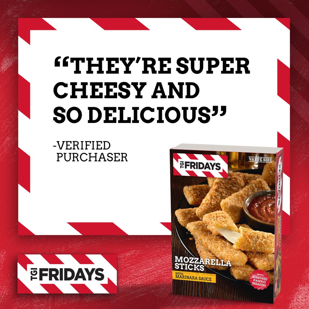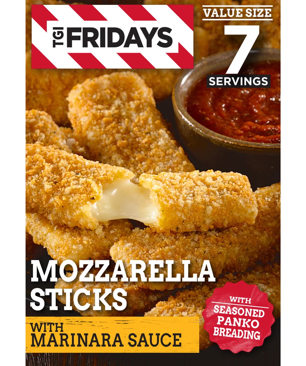 Enjoy your tgi fridays menu favorites at home with our easy restaurant style appetizers. Ready to heat,Sticks with marinara sauce are a quick and delicious appetizer or party food. Our mozzarella sticks are made with real mozzarella cheese that is coated with a crispy, garlic seasoned panko breading and served with a zesty marinara dipping sauce. Packaged in a box for convenient storage, you can heat our sticks in a conventional oven. Store our sticks in the freezer until ready to prepare. Whether you’re craving sticks, chicken wings, potato skins, spinach artichoke dip, chicken bites, jalapeno poppers or sliders, tgi fridays has frozen appetizers the whole family will enjoy. • Number of servings: 22 • Heinz North America, Pittsburgh, PA, 1522.