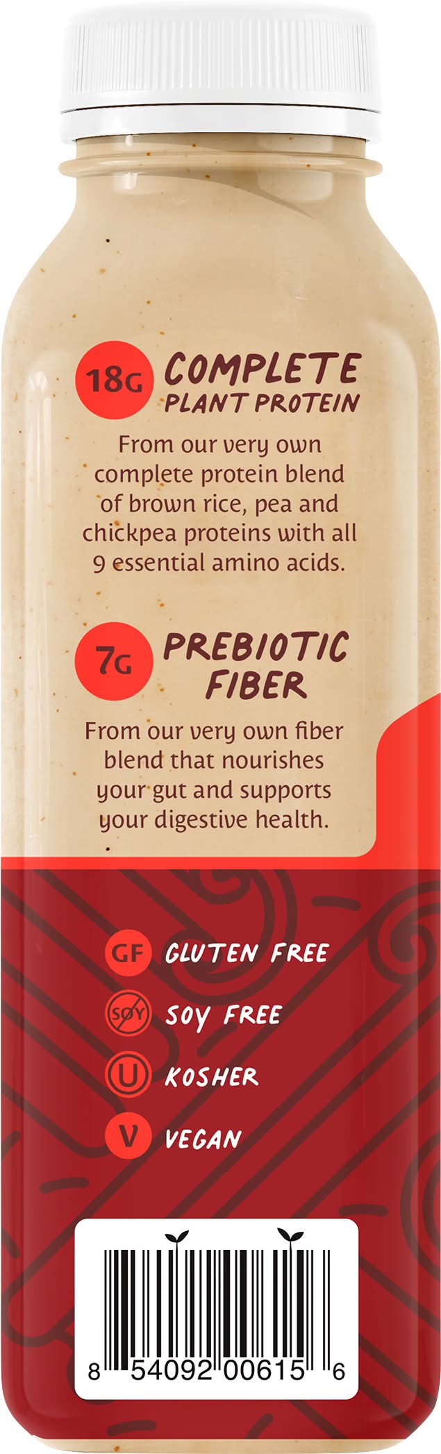 We specialize in plant protein, but not that chalky stuff. Our shakes are sweet without all the sugar, creamy without the dairy, and serves up a variety of nutrients without sacrificing deliciousness. So forget everything you think you know about plant protein, and get ready to be blown away by the true and tasty power of plants. 18 g Complete Plant Protein: From our very own complete protein blend of brown rice, pea and chickpea proteins with all 9 essential amino acids. 7 g Prebiotic Fiber: From our very own fiber blend that nourishes your gut and supports your digestive health. • Flavor: Cinnamon horchata • RawNature5 Corp., Los Angeles, CA, 90027 • Packaging: Reusable