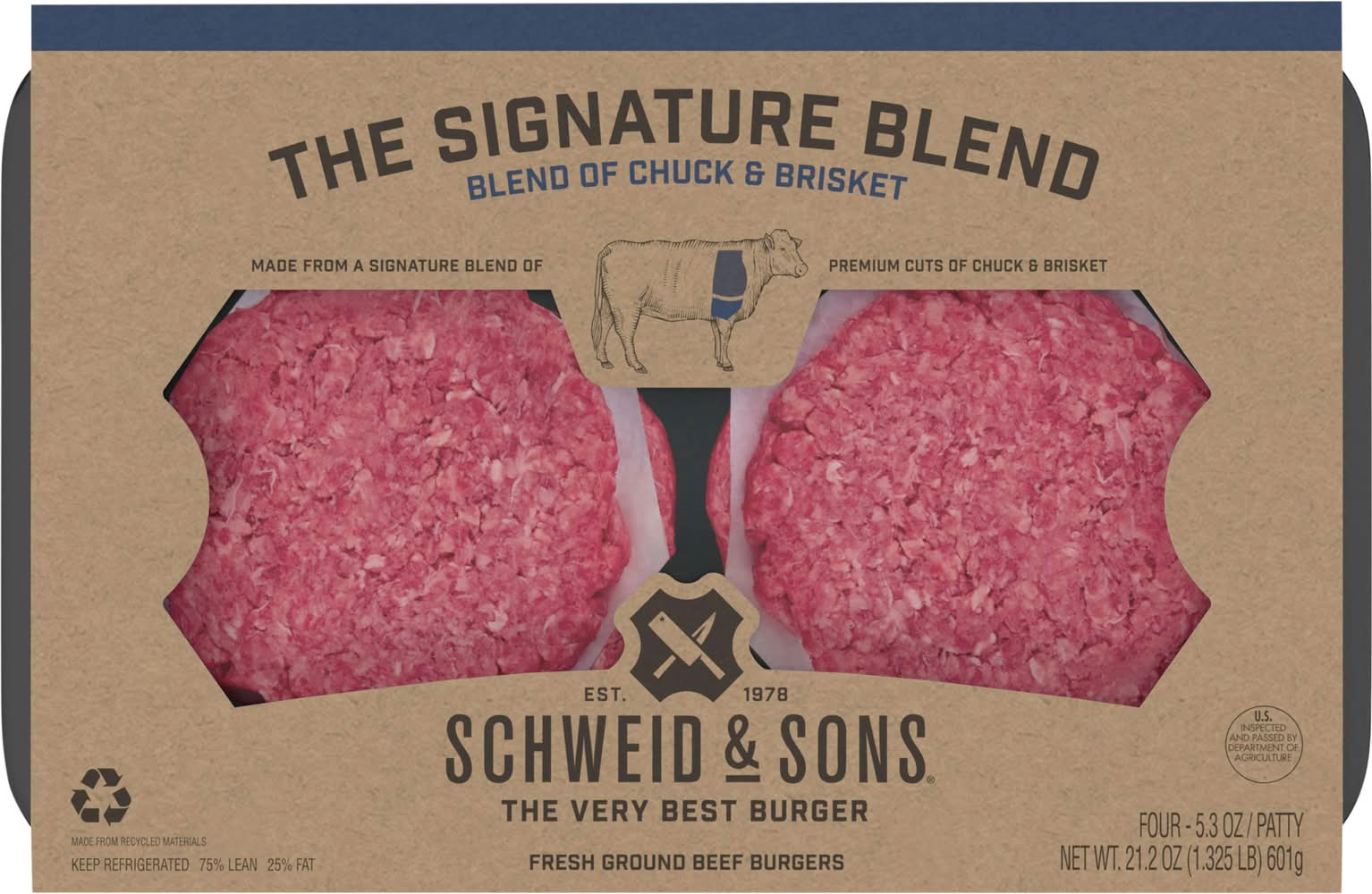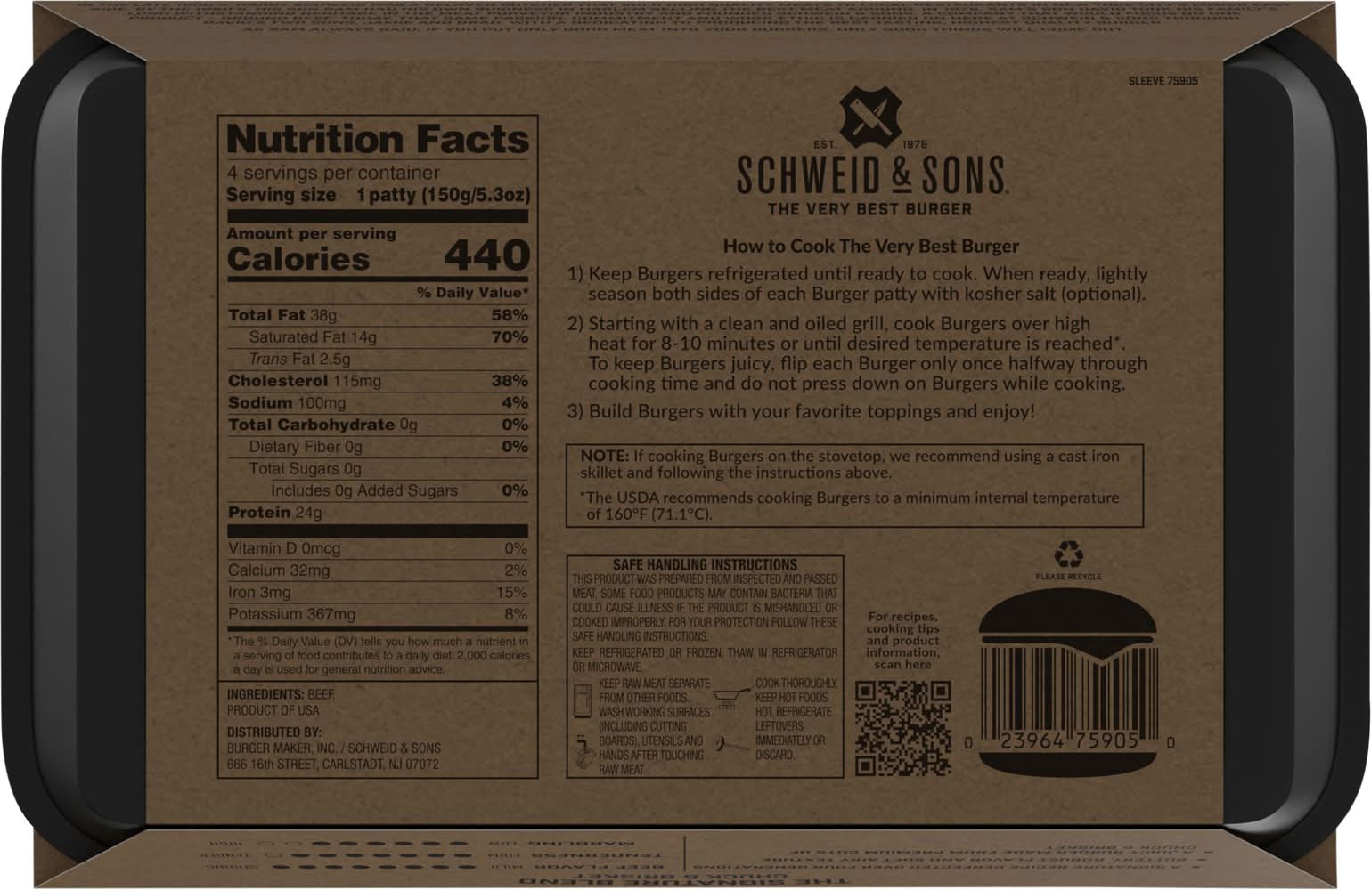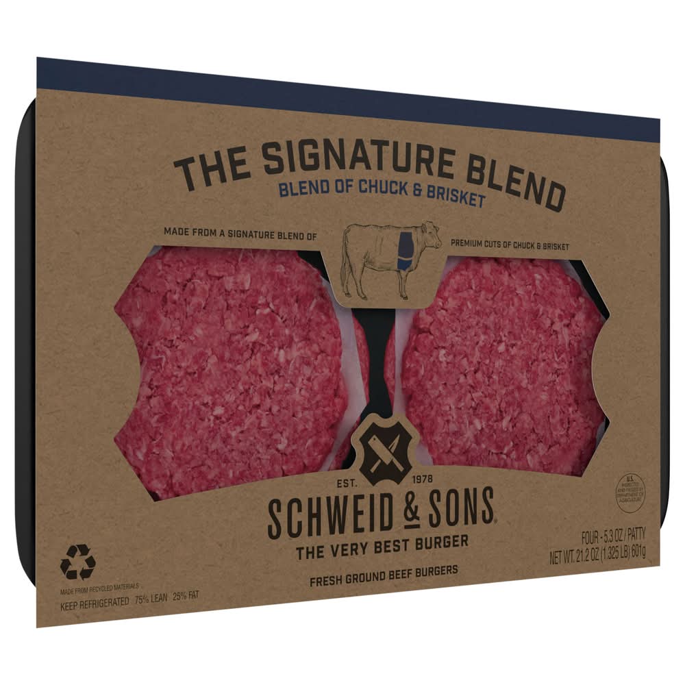 Schweid & Sons Signature Blend the Chuck Brisket Fresh Ground Beef Burgers (4 x 5.3 oz)