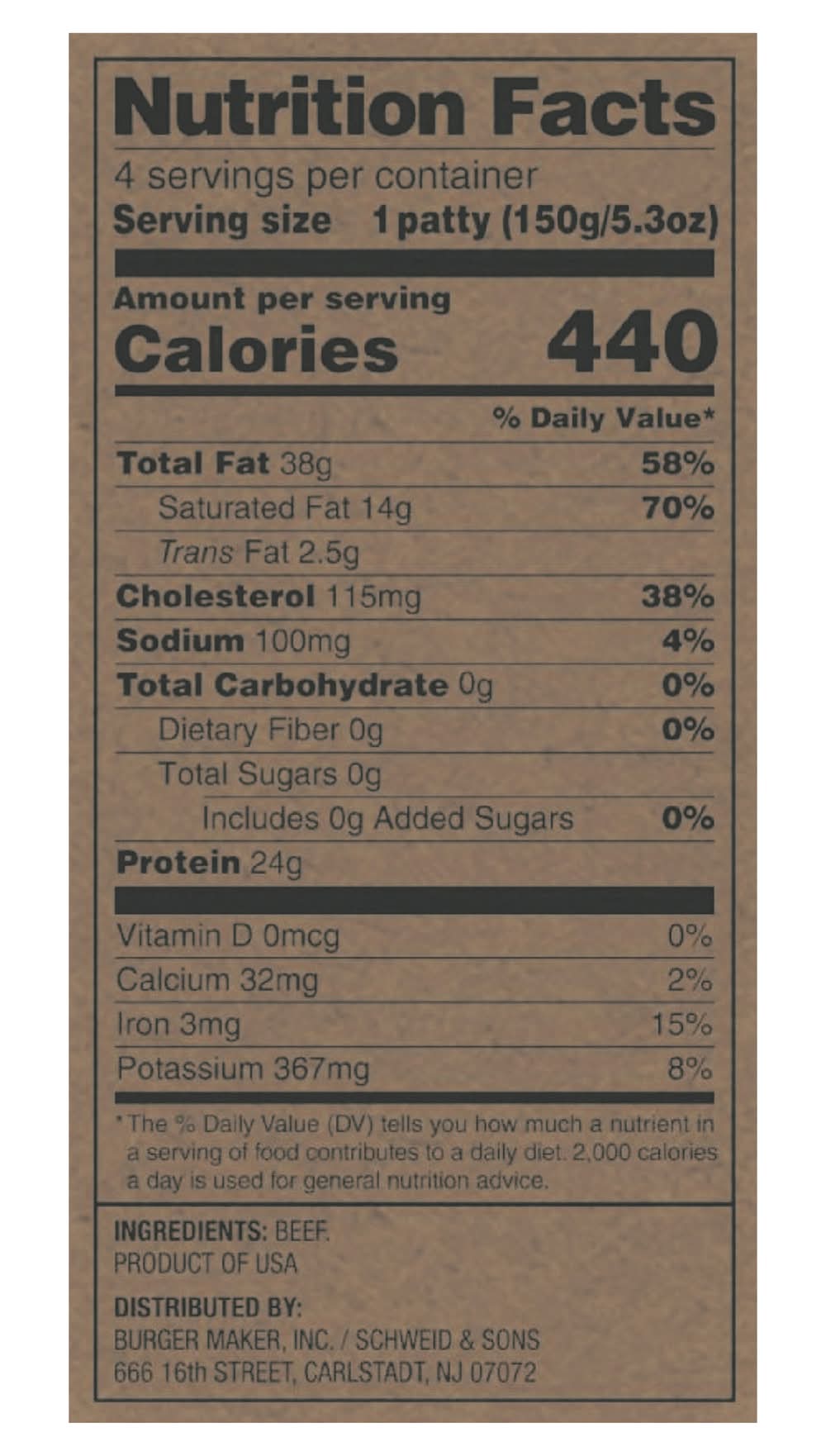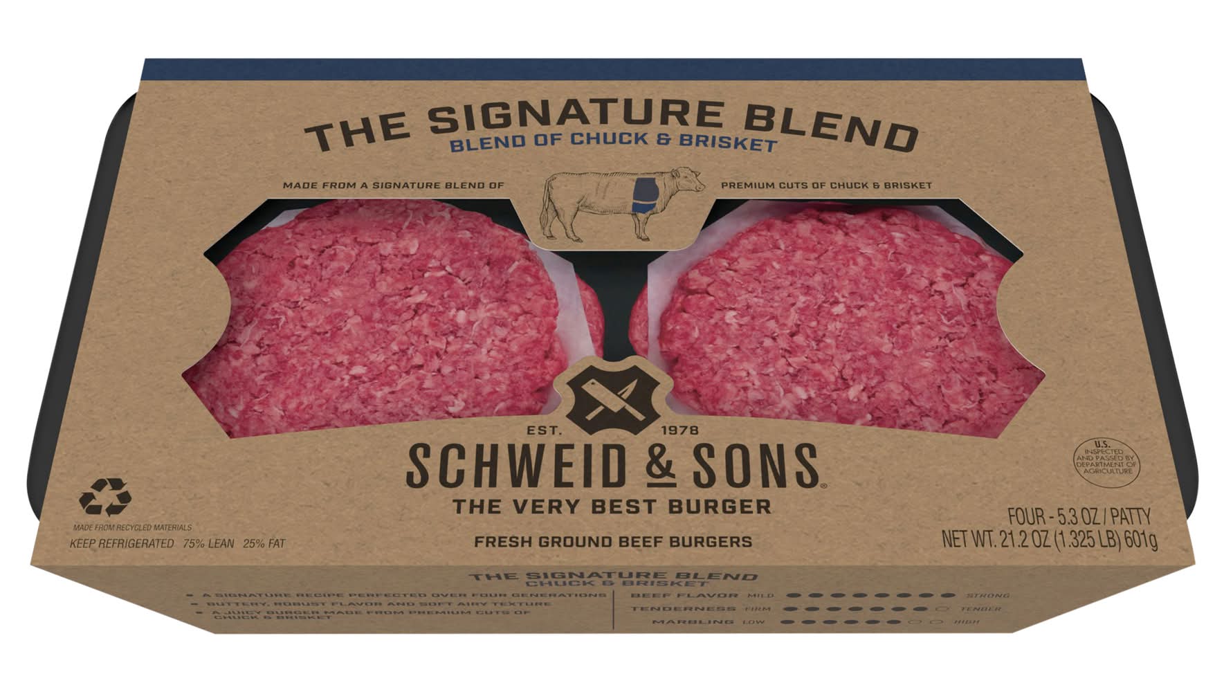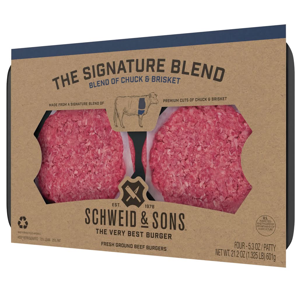 Schweid & Sons Signature Blend the Chuck Brisket Fresh Ground Beef Burgers (4 x 5.3 oz)