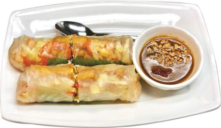 2 pieces. Vegetable fresh spring rolls. Vegetables and tofu rolled in rice paper, served with peanut sauce or fish sauce.
