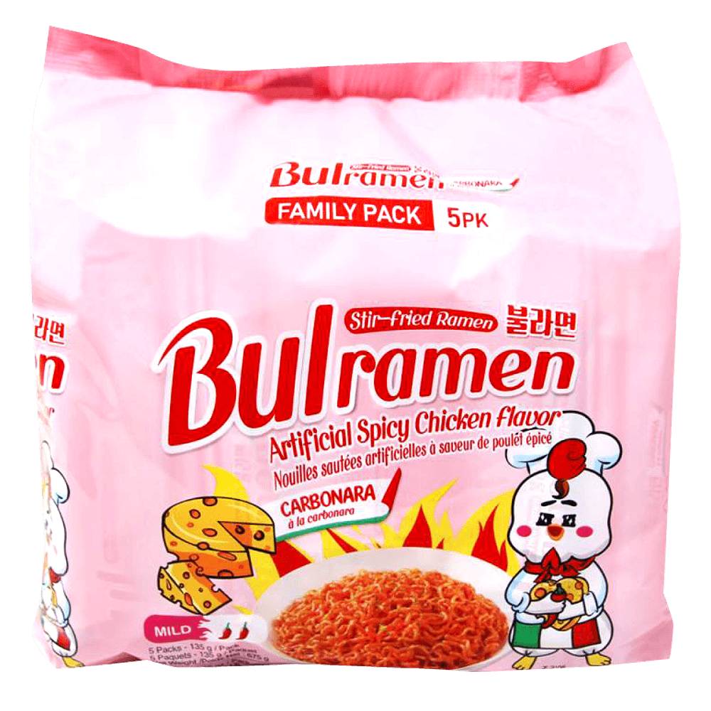 Bulramen Stir Fried Ramen Mild Carbonara Family pack, Spicy Chicken (4.7 oz, 5 ct)