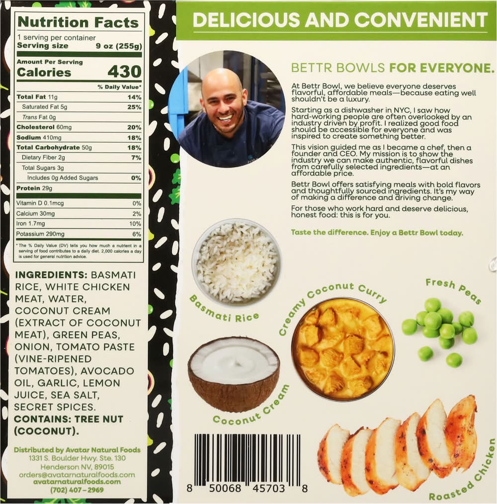 Bettr Bowl Coconut Curry Chicken Rice Bowl (9 oz)