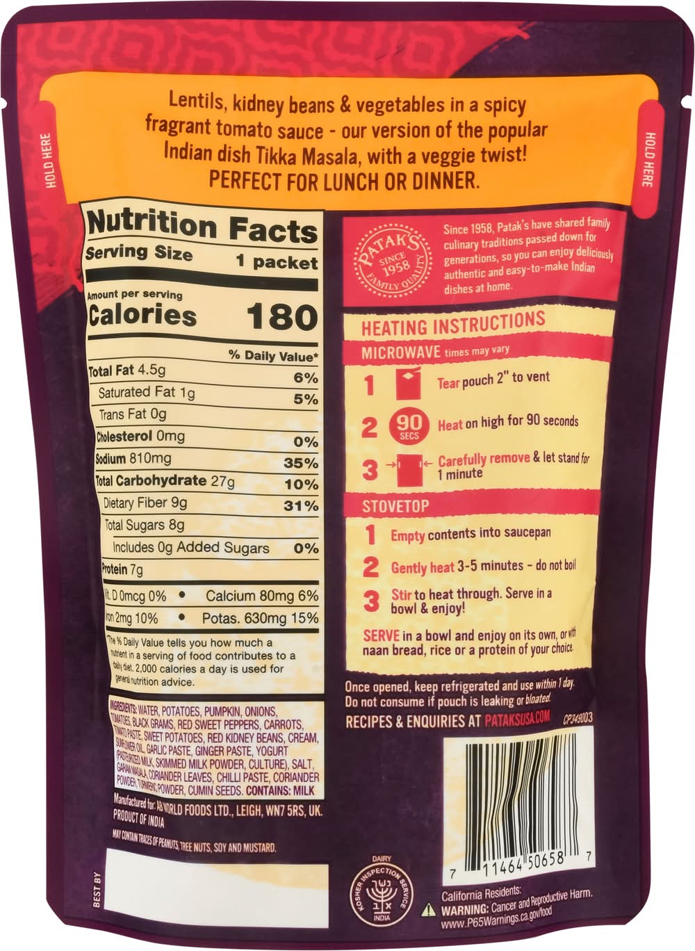 Patak's Original Medium Lentil & Veggie Tikka Masala (10.1 oz)