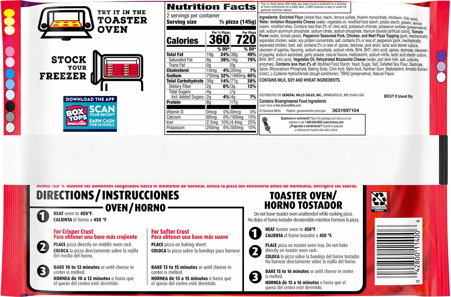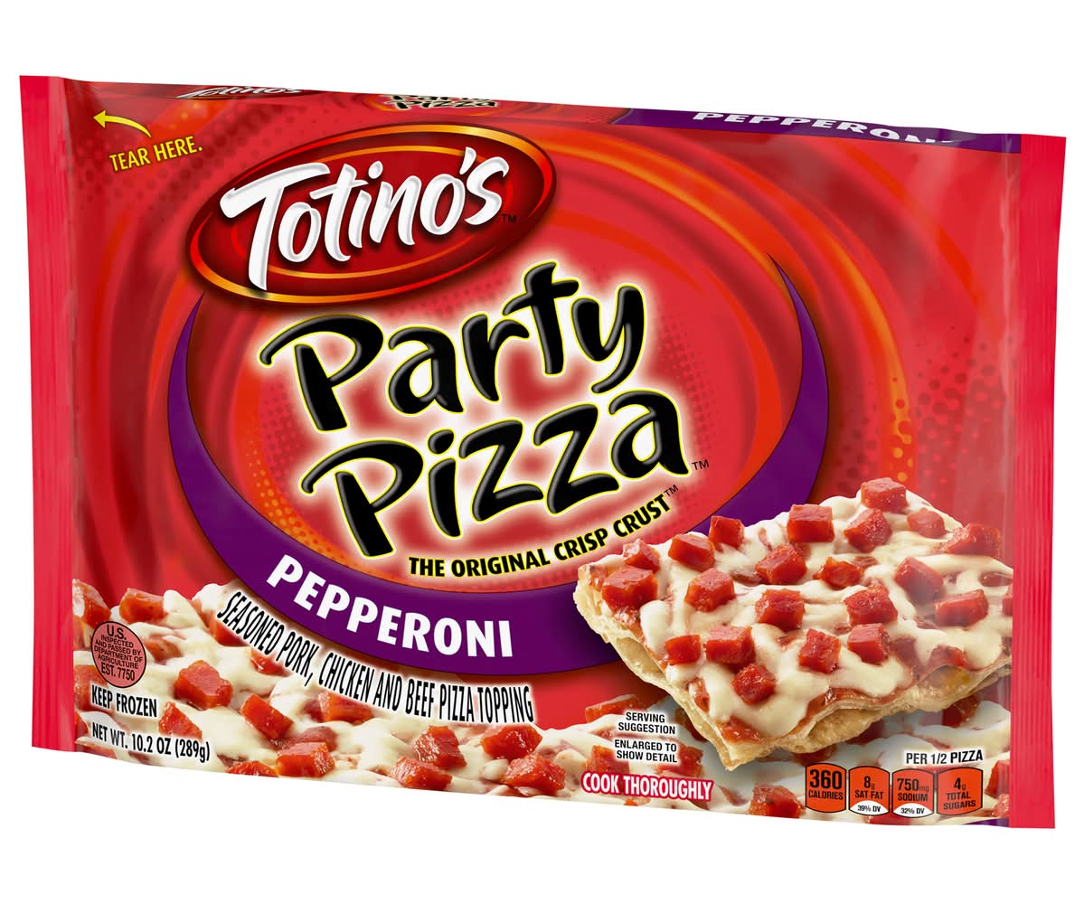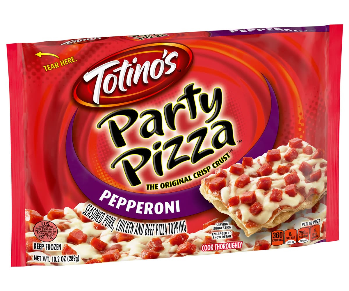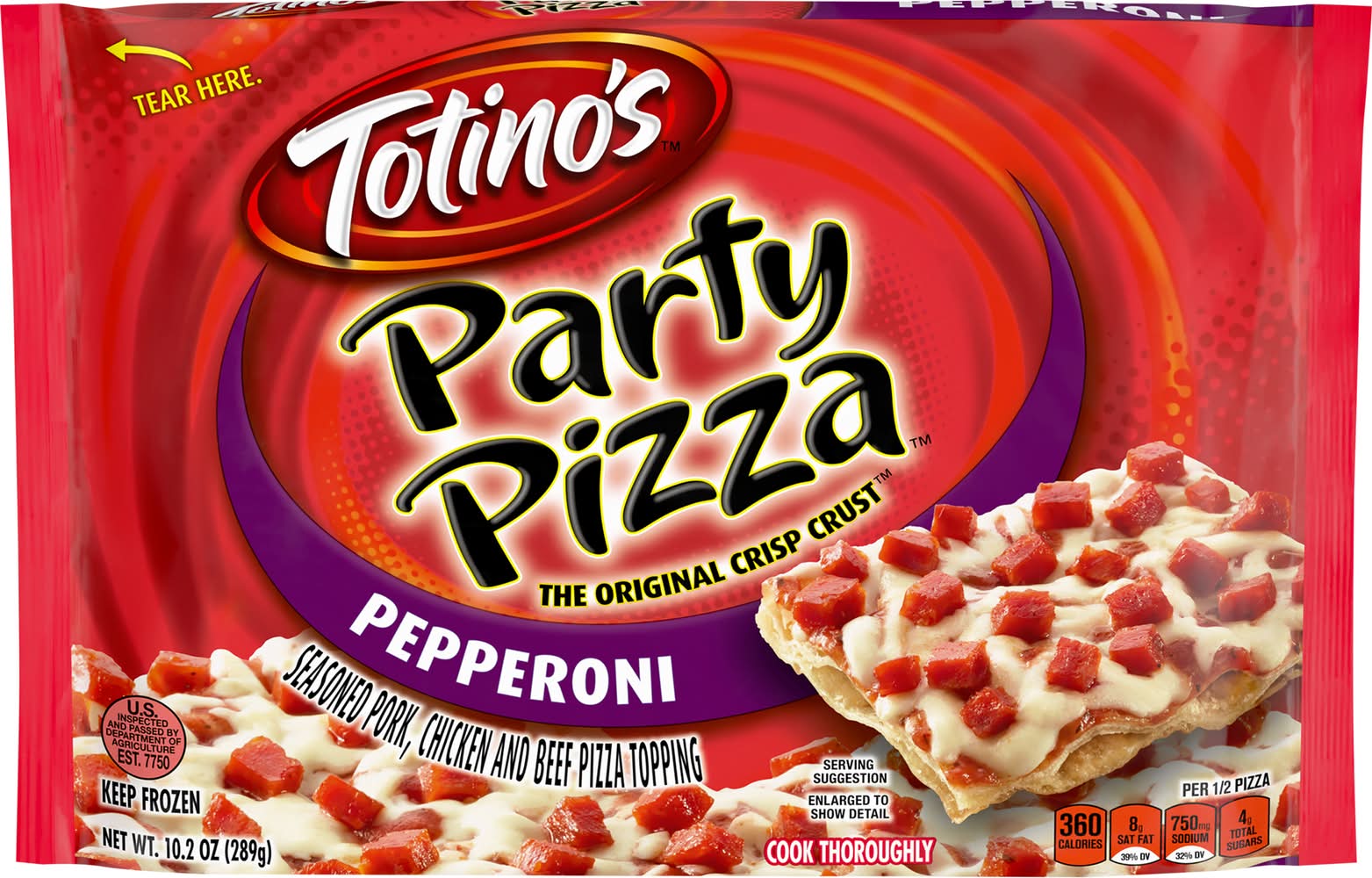 Invite your taste buds to this flavor party! Totino's Pepperoni Flavored Party Pizza is for people who need more pepperoni in their lives. With a quick baking time of under 20 minutes, simply pop the frozen pizza into the oven or bake two on a baking sheet for a larger gathering. Whether it's part of a busy weeknight dinner, or a quick after school snack for hungry kids or teens, Totino's Party Pizza is the perfect choice. Always a hit, every pizza pairs perfectly with your favorite snacks like pizza bagels, mini corn dogs, taquitos, and more. Totino's frozen pizzas are a classic that bring all the deliciousness without breaking the bank. Elevate your pepperoni pizza game with Pepperoni Party Pizza. This 10.2-ounce pizza provides two servings. • Flavor: Pepperoni • General Mills Sales, Inc., Minneapolis, MN, 55440