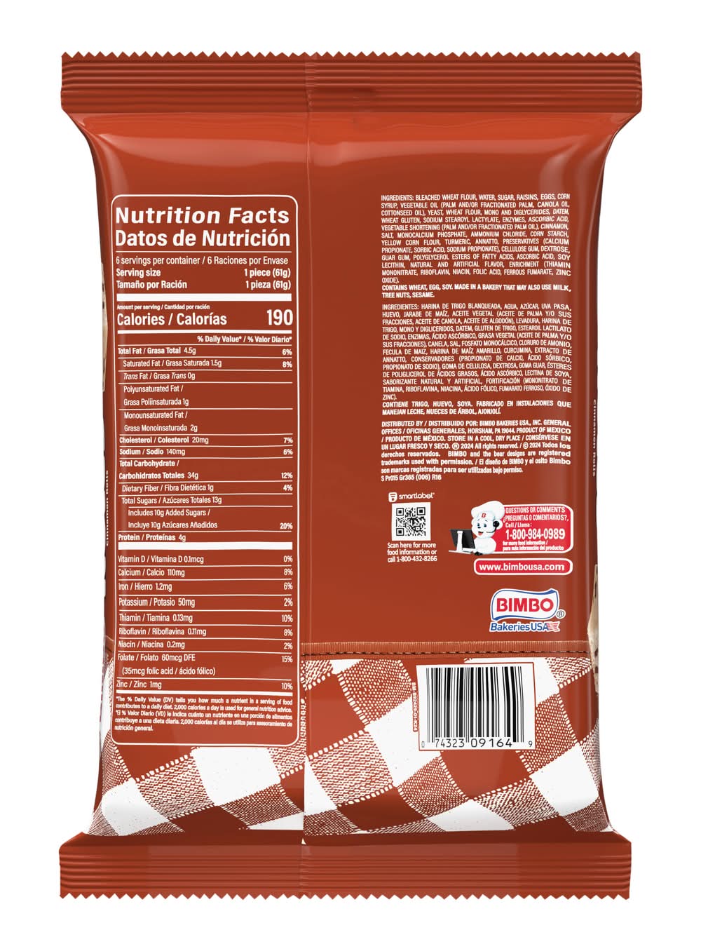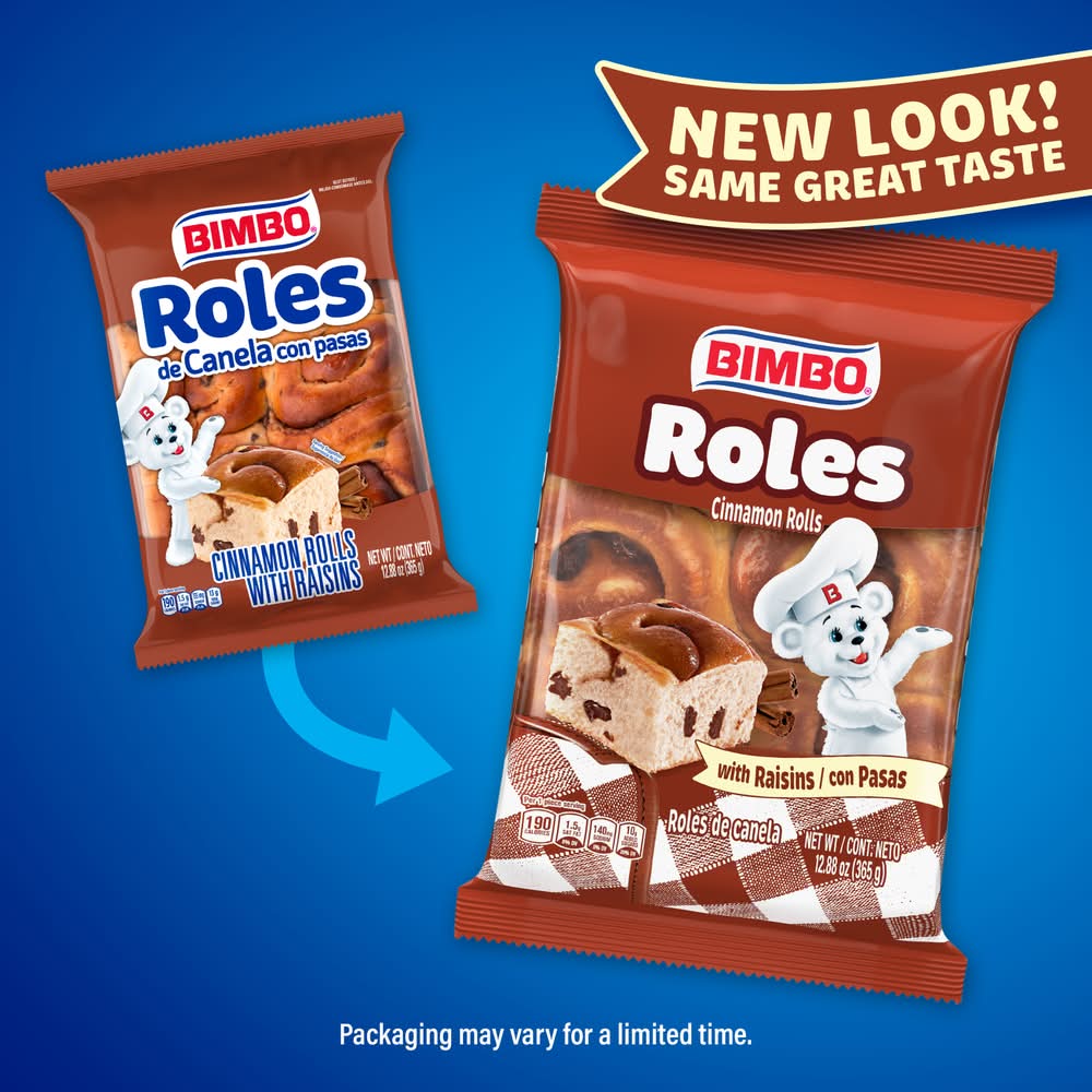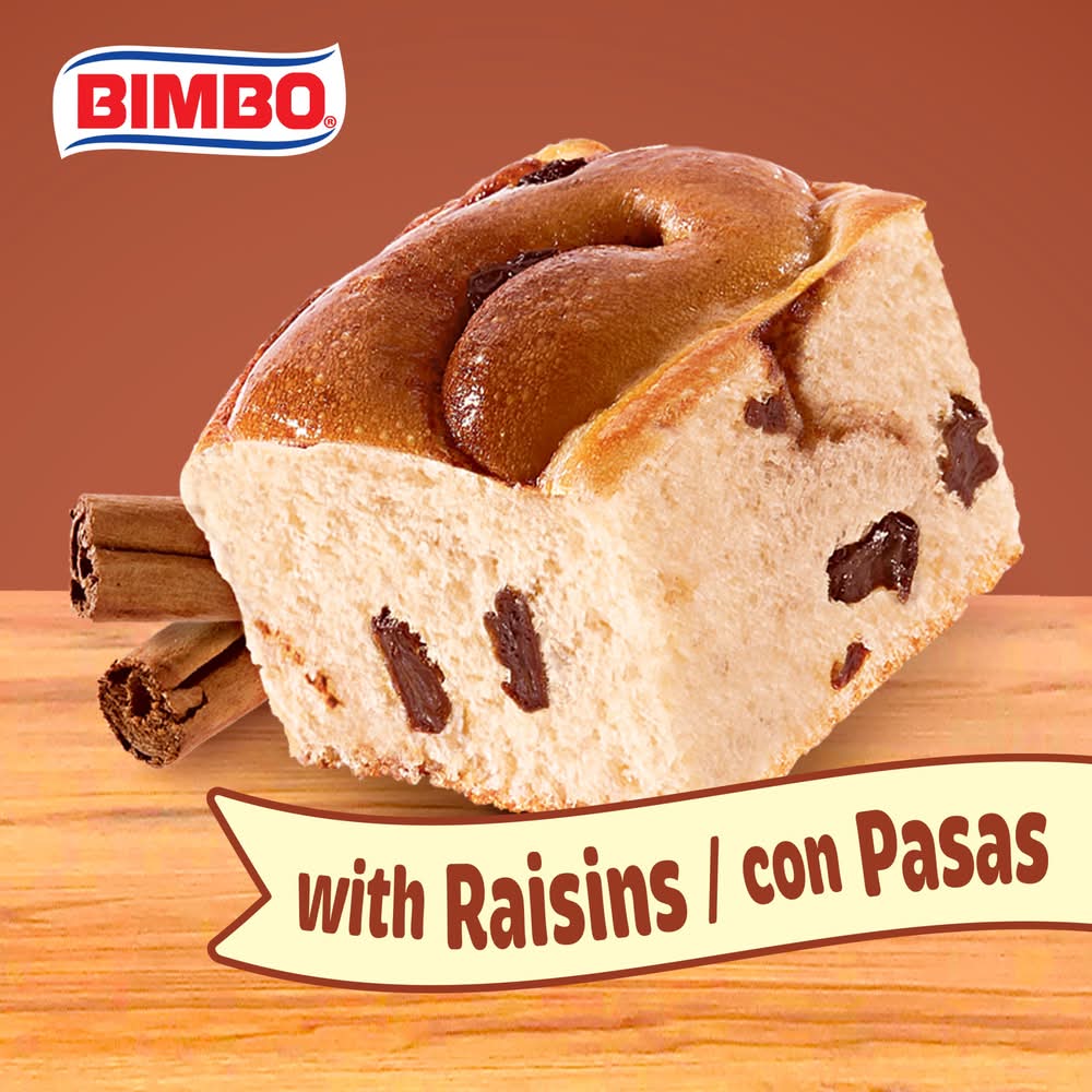 Bimbo Roles De Canela Con Pasas are great for breakfast, merienda, and beyond. Soft and delicious, Roles De Canela Con Pasas are like traditional cinnamon rolls but packed with juicy raisins. They are baked with love, just like all Bimbo breads and pastries. Wrapped for freshness, Roles De Canela Con Pasas are great to pack in lunchboxes, to enjoy as an after-school snack, or to enjoy as a treat any time you need a sweet to brighten your day. Share one with a friend or savor the deliciously fresh-baked taste yourself. Bimbo has been bringing families together for four generations. A family owned business since 1945, Bimbo Bakeries USA is the leading baking company in America, bringing families quality baked goods they can share with the ones they love. Bimbo Bakeries USA, Inc., Horsham,PA,19044
