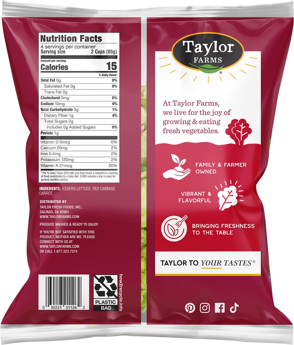 Taylor Farms Garden Salad Iceberg Lettuce Red Cabbage & Carrot (12 oz)