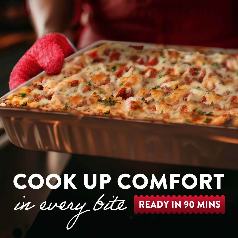 Gather around the table with your loved ones when you serve Lasagna. Make dinnertime a joyful moment. Thoughtfully crafted with flavorful, quality ingredients, made with premium pepperoni, Italian sausage, spicy tomato sauce, and real mozzarella cheese. Whether you’re looking for comfort food or family dinner ideas, this family lasagna is an easy way to solve your ‘what’s for dinner’ dilemma. You’ll always be ready to serve up something delicious. Keep the frozen lasagna in your freezer until you’re ready to cook and serve. • Nestle USA, Inc., Solon, OH, 44139 • Packaging: Reusable