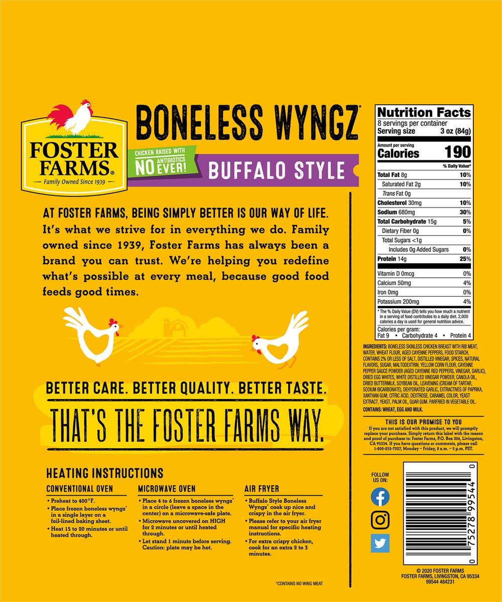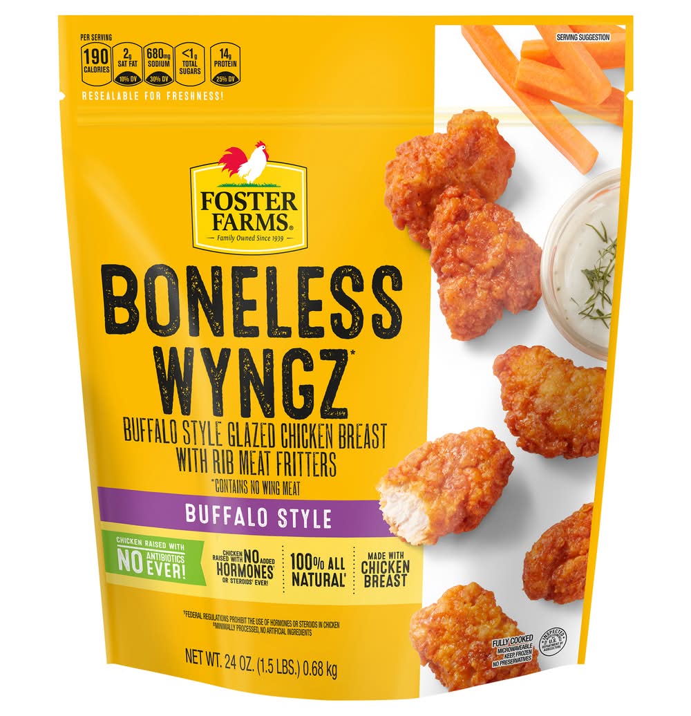 Boneless Wyngz, Buffalo Style • Number of servings: 8 • Foster Farms, Livingston, CA, 95334