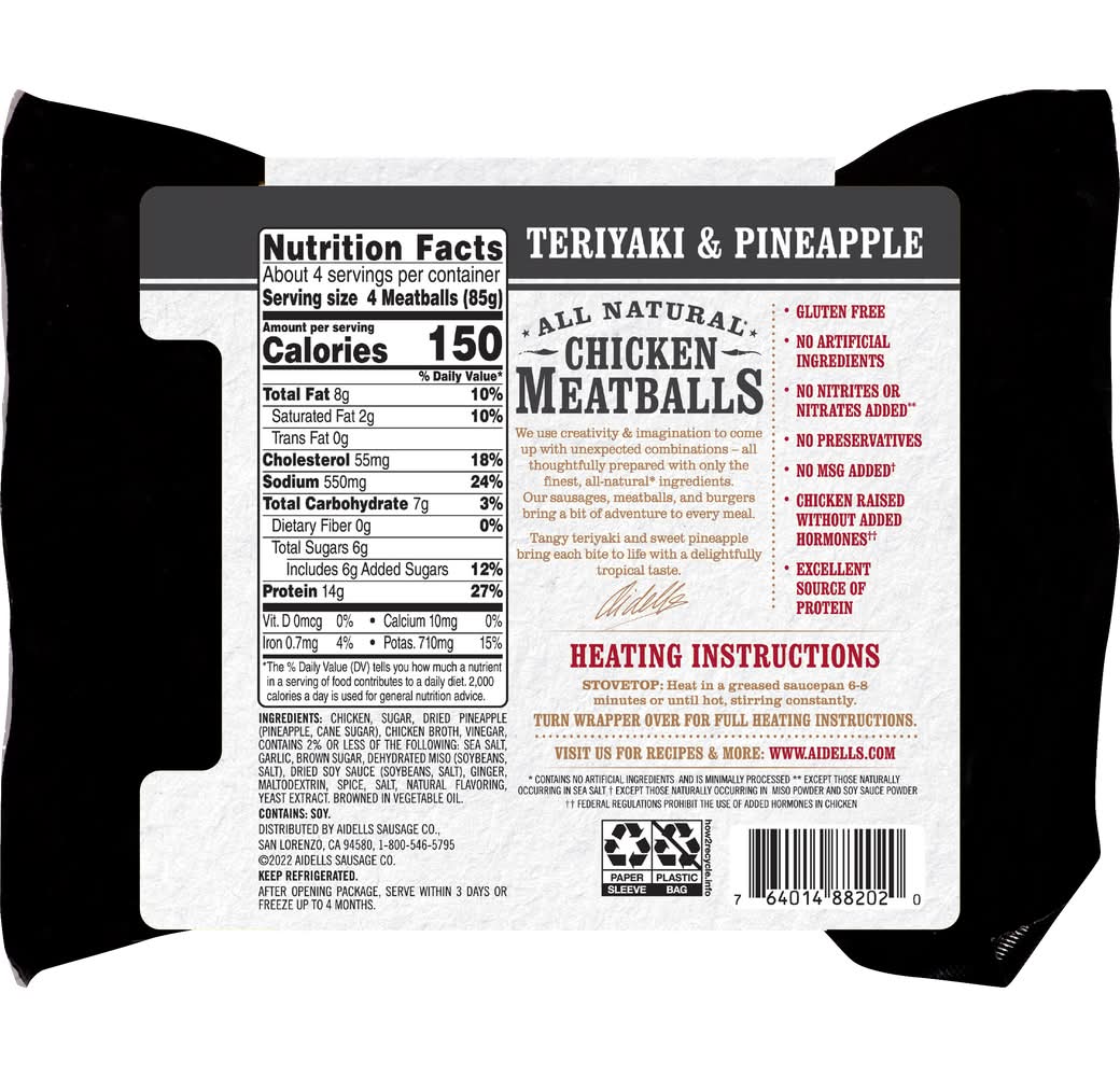 aidells Teriyaki & Pineapple Chicken Meatballs (340.19 g)