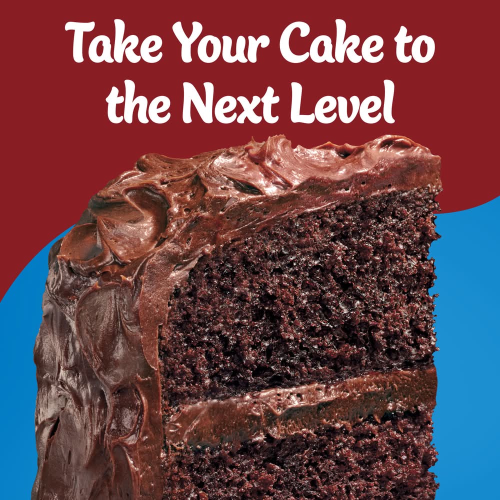 S'mores topped chocolate cake: prep: 15 min. bake: 34-38 min. 1 package pillsbury moist supreme devil's food premium cake mix. additional ingredients to prepare cake mix per package instructions. 1 container pillsbury creamy supreme chocolate fudge frosting 1 cup coarsely broken graham crackers (1/4-inch pieces). 2 cups miniature marshmallows. 4 (1.55 oz.) milk chocolate candy bars, coarsely chopped. prepare cake mix according to baking instructions using water, oil and eggs. bake in a 13 x 9-inch baking pan according to baking instructions. cool completely. heat broiler to high. frost cake with frosting. sprinkle graham crackers evenly over frosting. top with marshmallows and chocolate. broil 5 inches from heat 2 minutes or until marshmallows are lightly toasted. serve immediately. makes 22-24 servings. all you need: substitutions: 1 cup water 1/2 cup oil 3 eggs (if desired, substitute 4 egg whites or 1/2 cup egg substitute for the eggs). eggs: use 1/4 cup of greek yogurt or oil: use 1/2 cup unsweetened applesauce. baking instructions: 1. set oven to 350degrees f coat bottom of pan with no-stick cooking spray or shortening and a flour dusting. for bundt cake, coat entire pan. for cupcakes, use paper baking cups. 2. beat cake mix, water, oil and eggs in bowl with mixer on medium speed for 2 minutes. pour batter into pan(s). 3. bake at 350degrees f follow the bake times below. when toothpick inserted in the center comes out clean, cake is done. cool 10 to 15 minutes before removing from pan. cool cake completely before frosting. store loosely covered. pan size: 13 x 9-inch; bake time: 34 to 38 min, pan size: two 8-inch rounds; bake time: 34 to 38 min, pan size: two 9-inch rounds; bake time: 29 to 33 min, pan size: bundt pan; bake time: 39 to 43 min, pan size: 24 cupcakes (1/2 full); bake time: 19 to 23 min. warning: do not eat raw batter. please cook fully before enjoying.