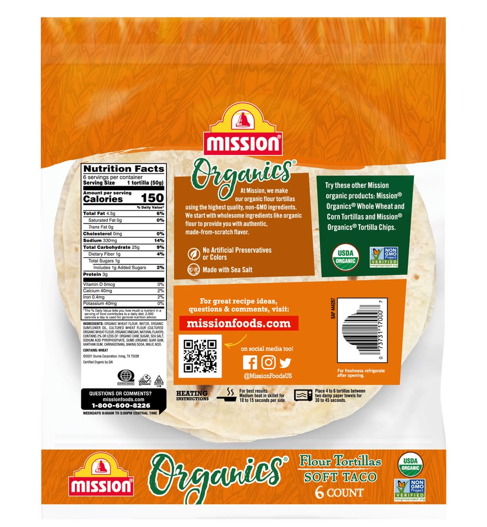 Organics Soft Taco Size Flour Tortillas Gruma Corporation, Irving,TX,75038