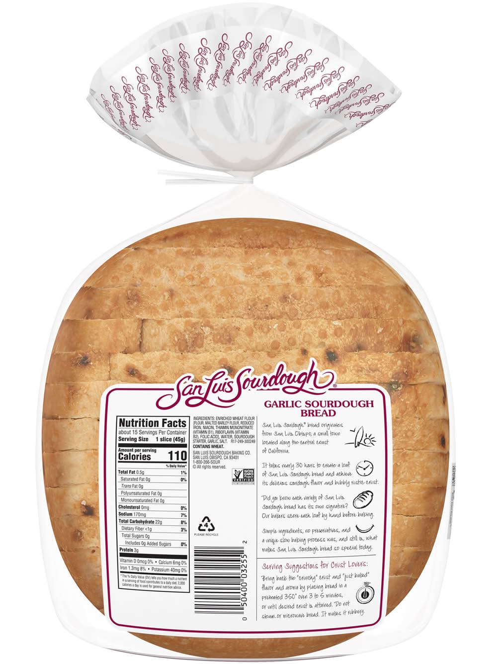 The San Luis Sourdough you love, now with Garlic. Number of servings: 13