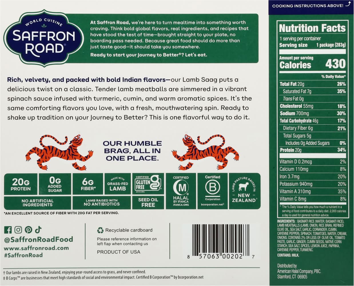 Saffron Road Lamb Saag With Basmati Rice (10 oz)