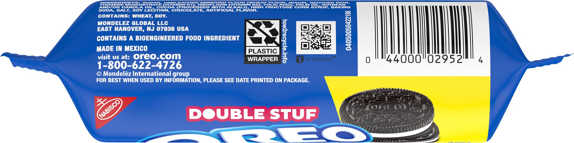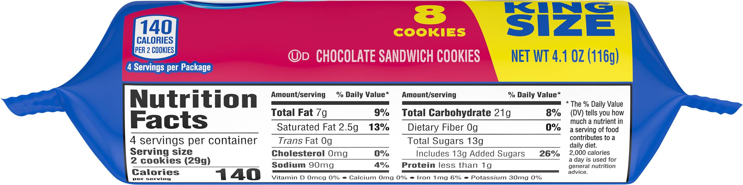 Oreo Double Stuf Sandwich Cookies offer a delightful combination of rich chocolate flavor with a creamy filling. Each package contains 8 cookies, divided into 4 servings. Each serving consists of 2 cookies, amounting to 140 calories. Enjoy the classic taste of these cookies with an extra layer of smooth cream for a satisfying treat. Flavor: Chocolate