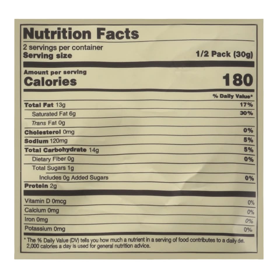 Ingredients: Potato, Palm Oil (Palm Oil, D-Tocopherols), Honey Butter Taste Seasoning (Crystalline Fructose, Sugar, Salt, Skim Milk Powder, Butter Mixture Powder, Yeast Extract Powder, Hydrolyzed Soybean Protein, Whey Powder Silicon Dioxide, Soy Sauce Powder, Potassium Chloride, Natural & Artificial Flavors, Masking Agent (Whey Powder, Butter, Vitamin E), Lactic Acid, Parsley Flake, Acacia Honey Powder Disodium 5 Ribonucleotide, Butter, Citric Acid, Malic Acid, Sucralose, Glucose) Contains: Milk, Wheat, Soybeans, Eggs, Peanuts, Tree Nuts