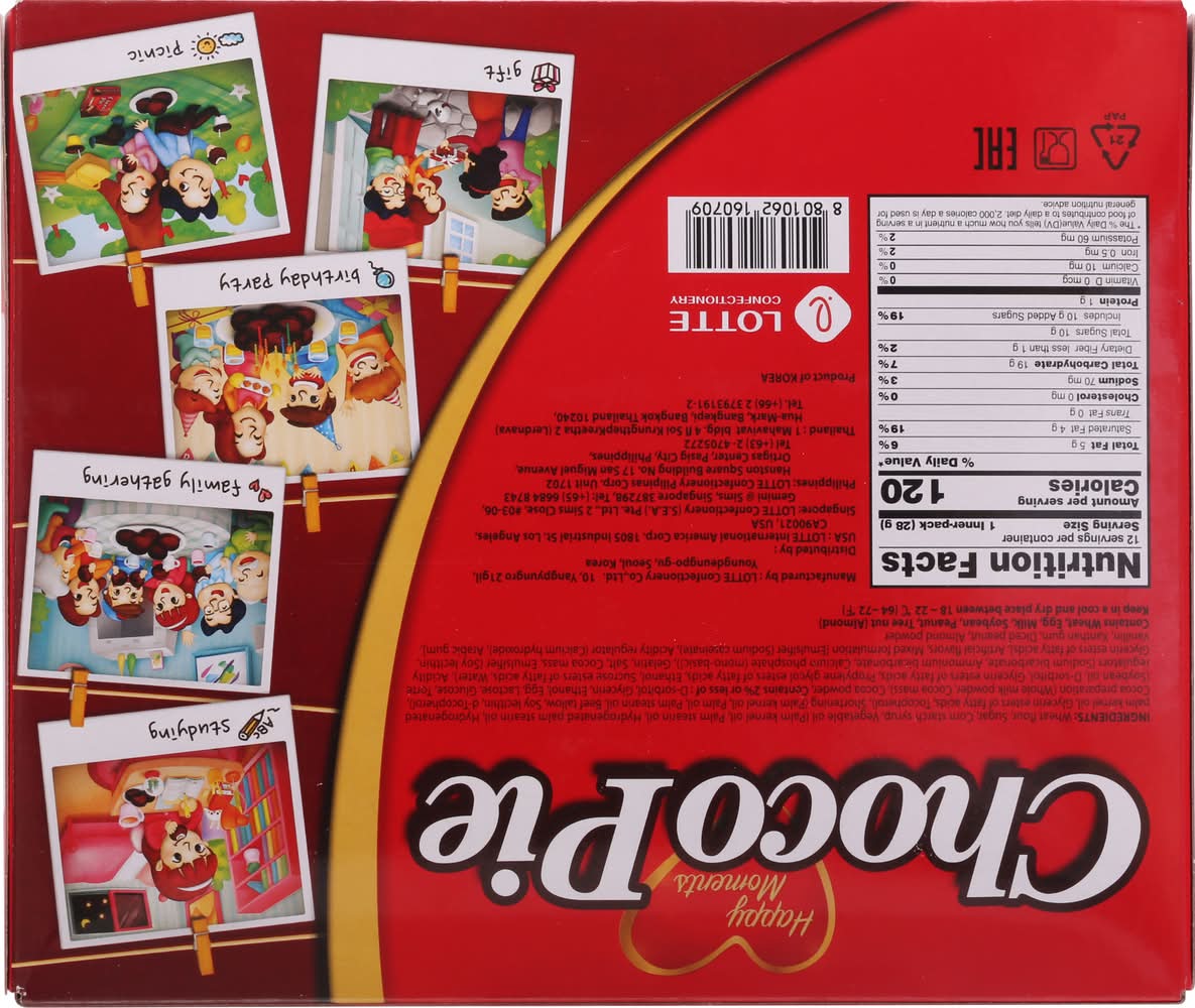 Choco Pie, Happy Moments • Lotte Confectionery Co., Ltd., 10, Yangpyungro 21 gil,Youngdeungpo-gu,Seoul,Korea • Packaging: Reusable