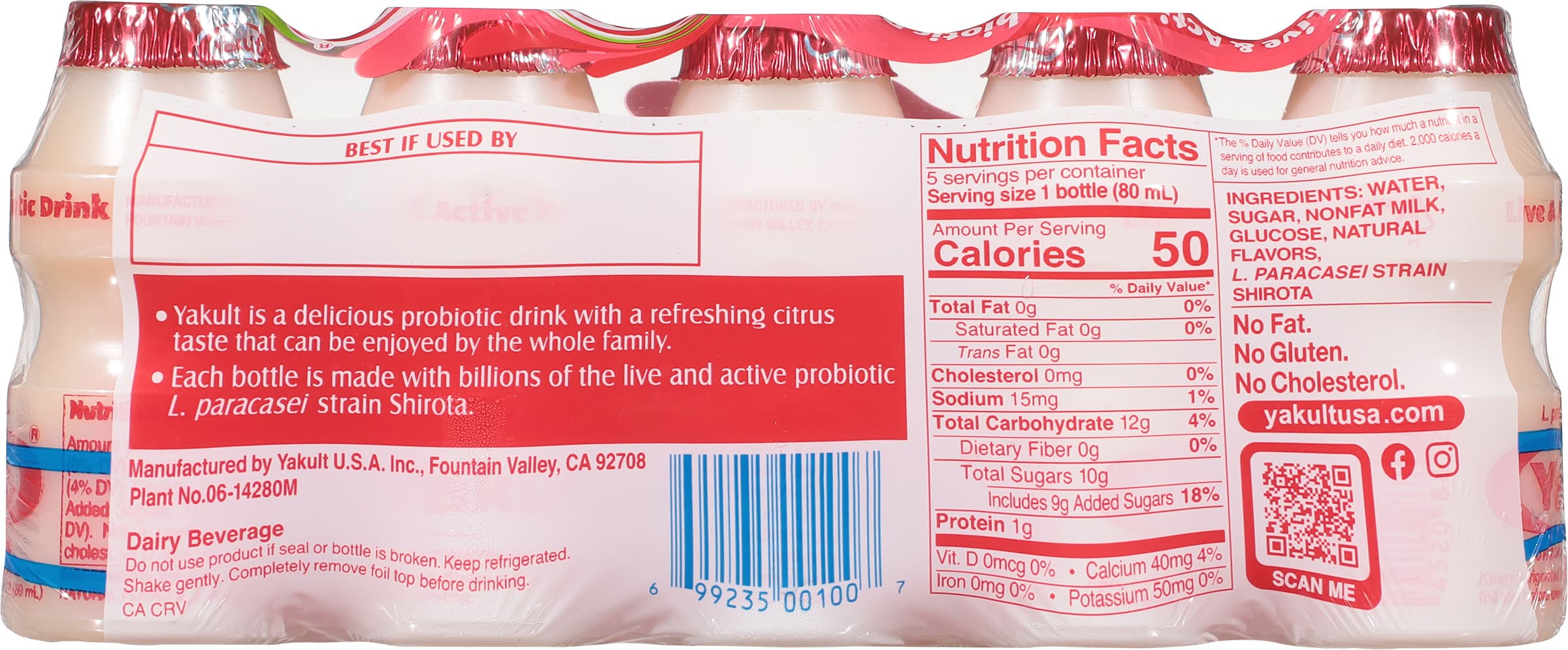 Ingredients: Water, Sugar, Nonfat Milk, Glucose, Natural Flavors, L, Paracasei Strain Shirota Contains: 'Contains Milk'