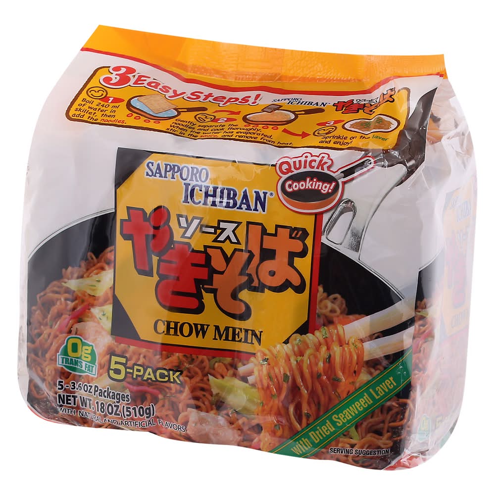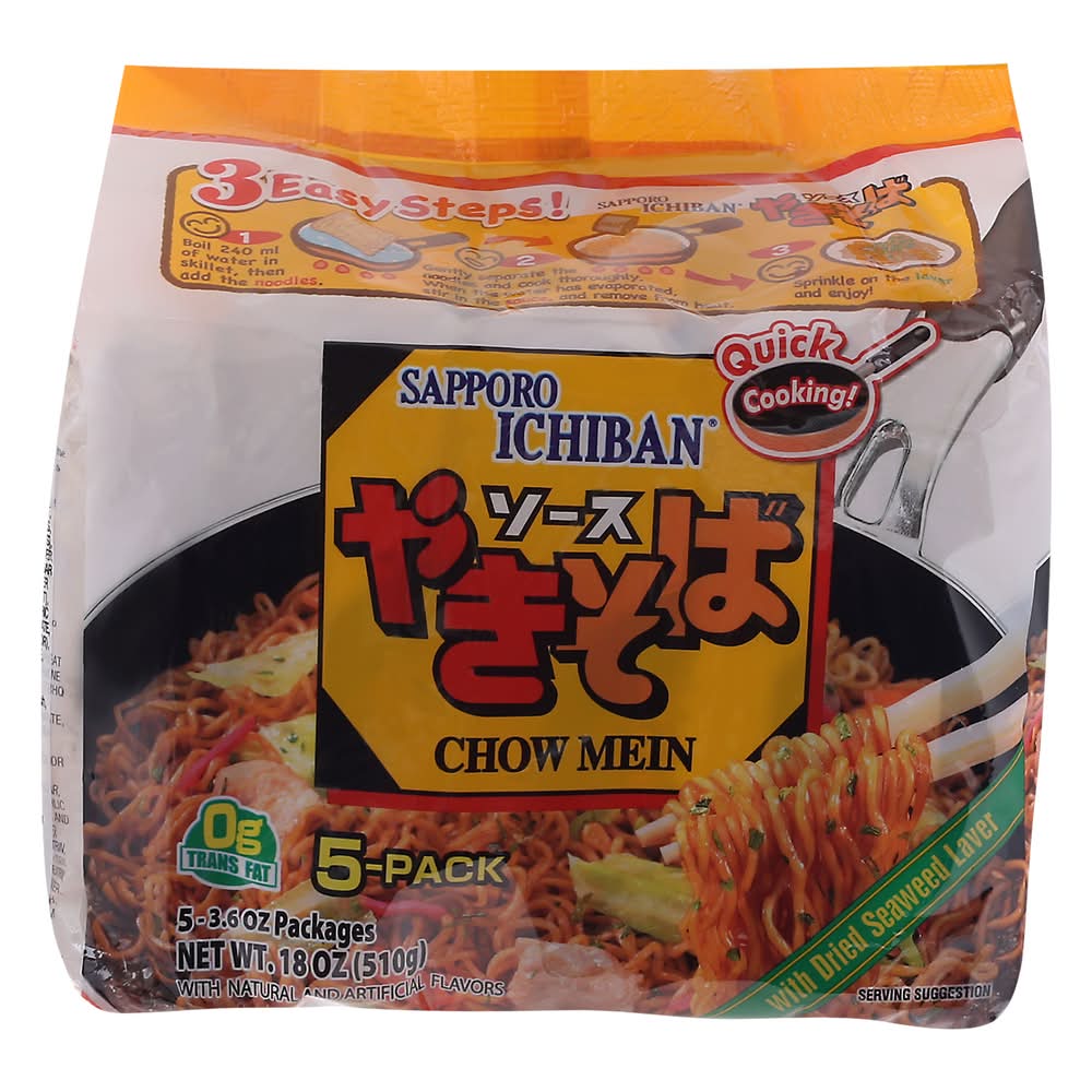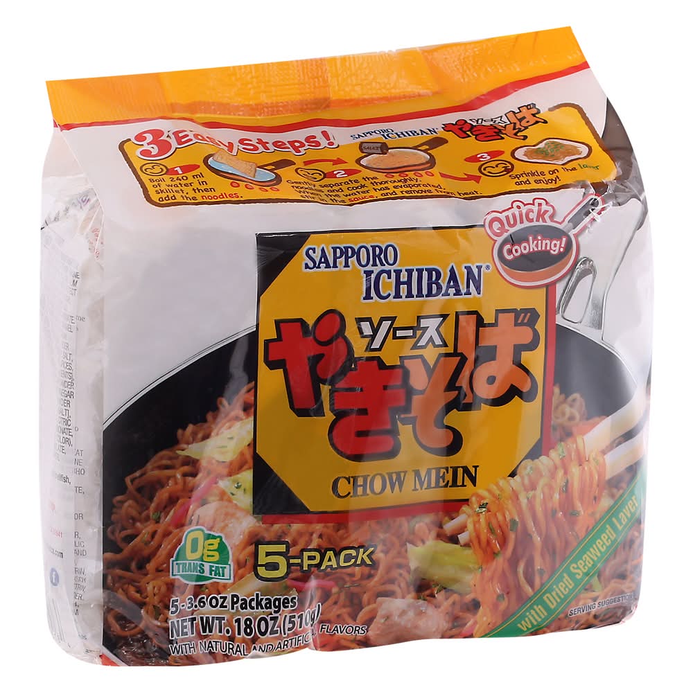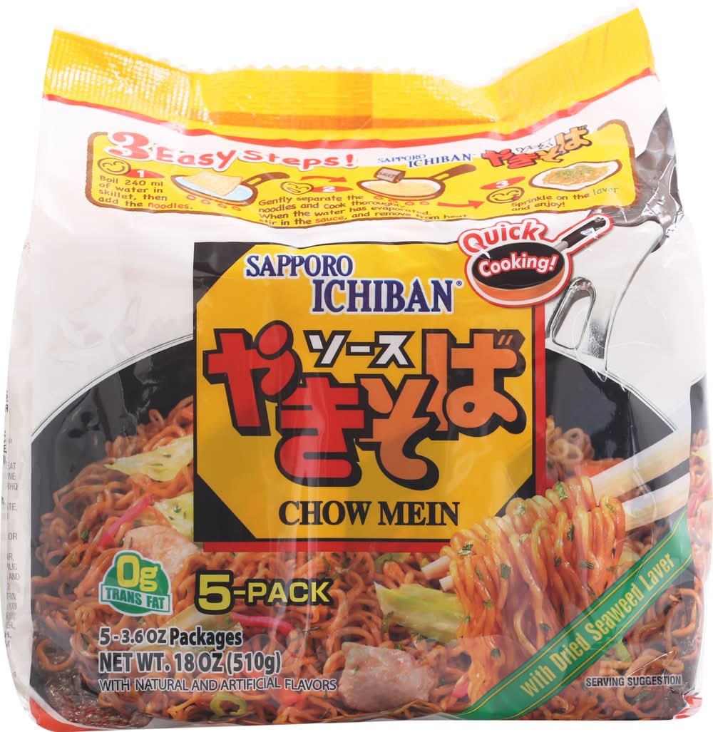 Sapporo Ichiban Chow Mein With Dried Seaweed (18 oz, 5 ct)